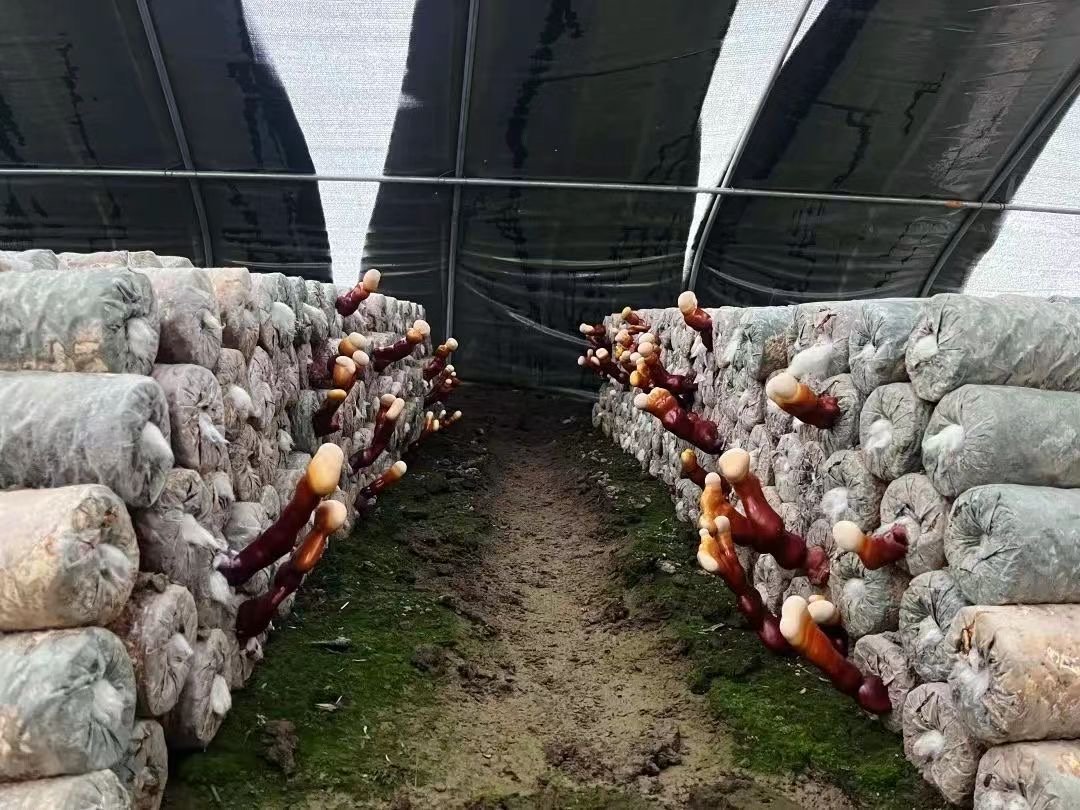 眼下,正是灵芝菌段下地的好时节。在磐石市松山镇红旗村的灵芝种植基地,村民正将灵芝菌段解袋、平放、回土,现场呈现出一幅热火朝天的繁忙景象。