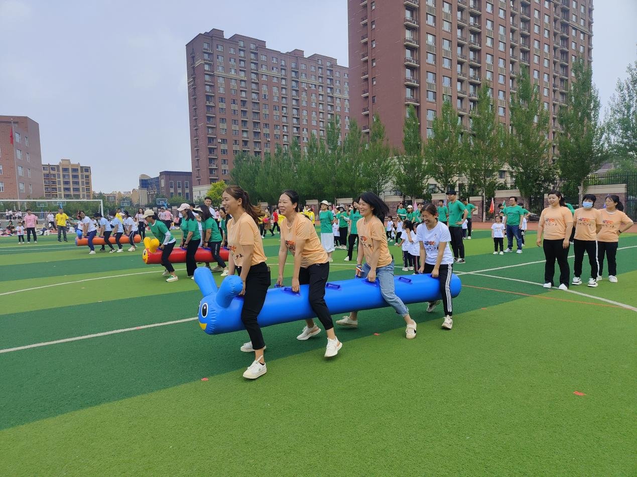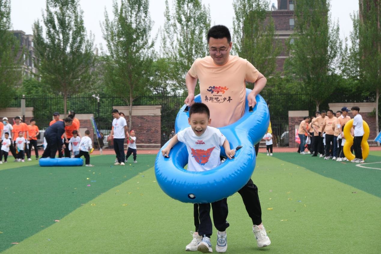 比赛中,不同年龄段的孩子参与的运动项目有所不同。多数项目需要家长和孩子共同配合才能完成。在家长的帮助下,孩子们或钻过呼啦圈,或坐上龙舟,或推进充气滚筒,感受运动趣味的同时提高了走、跑、钻、爬多项体能技能。过程中难免有些手忙脚乱,但整体气氛热烈,校园内充满了欢声笑语。