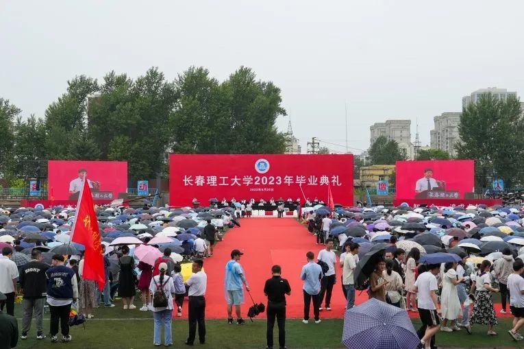 今年,长春理工大学共有毕业生5915人,其中本科毕业生4182人、硕士毕业生1671人、博士毕业生62人。当天下起的淅沥小雨仿佛也在诉说着离别的不舍,随着8台无人机放下“追光逐梦,展翅翱翔,以梦为马,不负韶华”的条幅,典礼在全体毕业生放飞写满期许的纸飞机中落下帷幕。