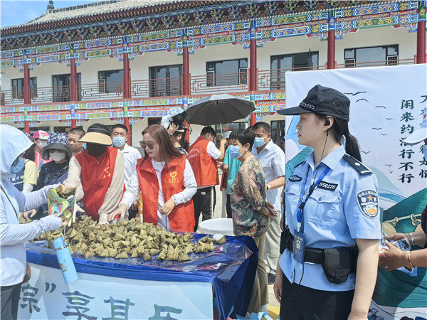 在农特商品展卖区,来自大安各乡镇和企业的黄菇娘、杂粮等农特商品琳琅满目。“现场给我们免费发放了粽子,味道特别好,玩得非常开心,节日氛围也非常浓厚。”来自镇赉县的游客王嘉钰说。