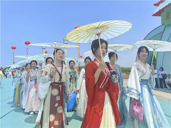 “妈妈,大鱼!”顺着孩子的声音,周围游客的目光望向由8米高的“大鱼”模型打头阵走来的巡游队伍。身着汉服的“小哥哥、小姐姐”紧随在“大鱼”身后,在嫩江湾旅游区中与游客们互动,游客们纷纷追着巡游队伍打卡留念,让“一字长蛇阵”的规模不断壮大。