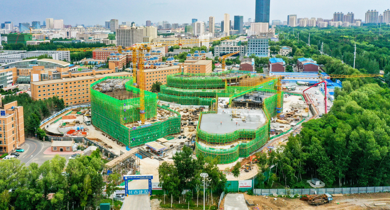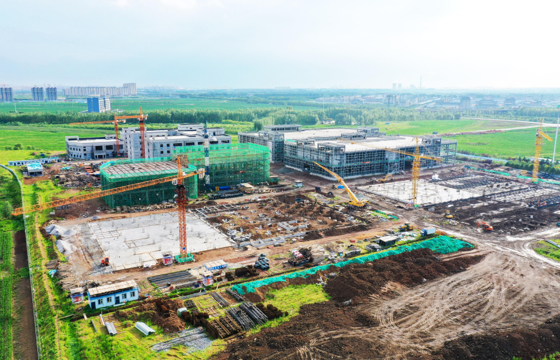 这是位于长春新区所辖长春高新区的圣博玛超高性能医疗器械产业化项目(7月8日摄,无人机照片),主要建设研发和中试放大中心、核心生产中心、生产配套中心及其他配套设施,生产可吸收界面螺钉、聚乳酸面部填充剂、聚醚醚酮界面螺钉、带袢钛板、金属带线锚钉等产品,预计未来5年可实现产值超百亿元。