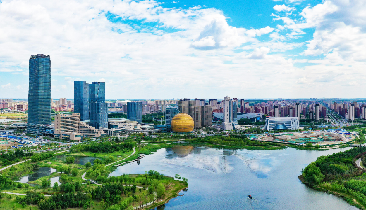 这是位于长春新区所辖北湖开发区的科创广场(7月8日摄,无人机照片),整个项目全面秉承“以科技创新为核心、以商务金融为引领、以制造研发为基础、以现代服务为特色”的规划理念,形成以科技研发、商务金融、商业商贸、文化创意、生态休闲为主导的五大功能体系,打造智能化、高端化科技创新中心和高端服务业集聚区。