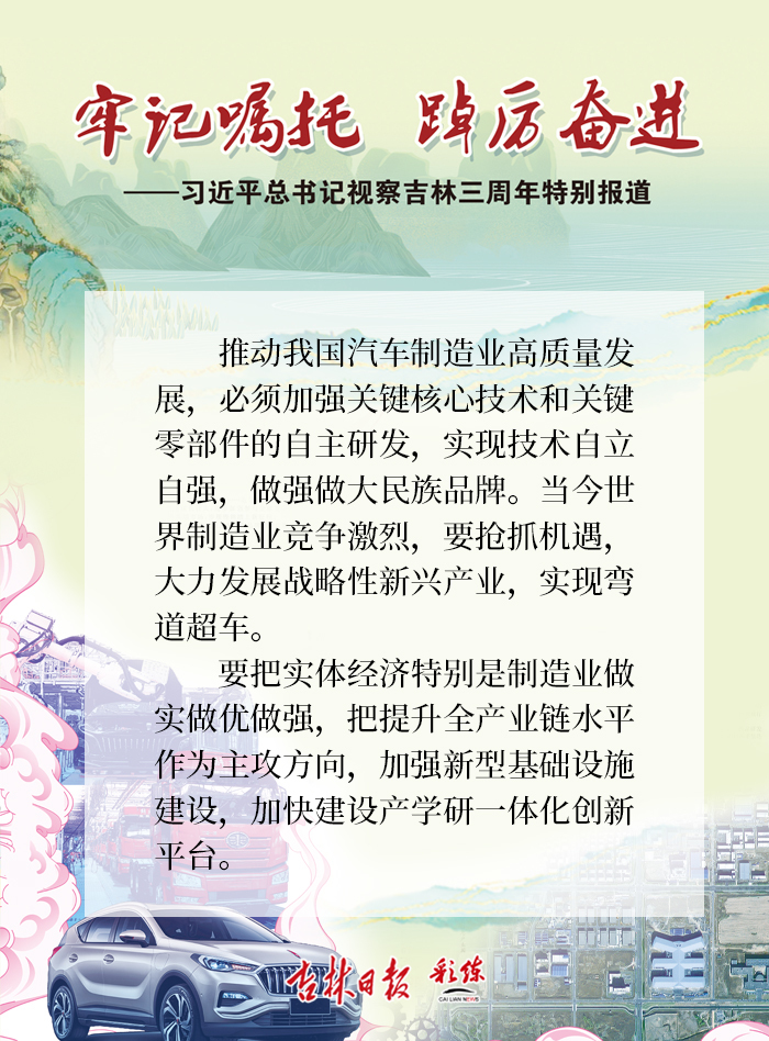 “三年来,中国一汽深入贯彻落实习近平总书记视察一汽重要讲话精神,坚定不移走自主创新道路,在关键核心技术上奋力攻坚,民族汽车品牌强势崛起。”吉林大学经济学院院长丁一兵看到一季度我省汽车产业发展数据时感慨道:“2020年习近平总书记来到中国一汽集团研发总院视察的殷殷嘱托,为吉林汽车产业指明了高质量发展的方向,吉林汽车产业正走在创新重塑的通途之上。”