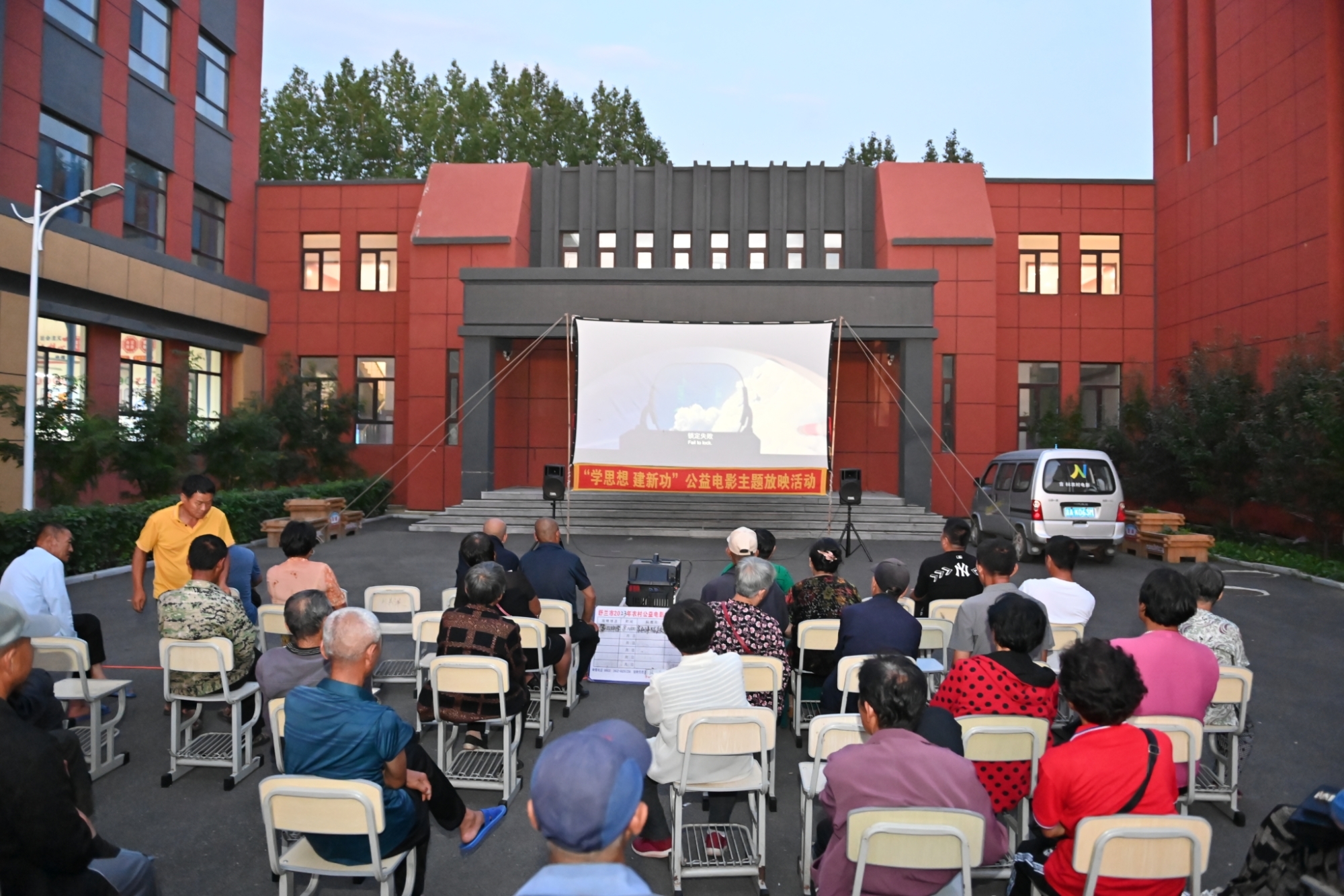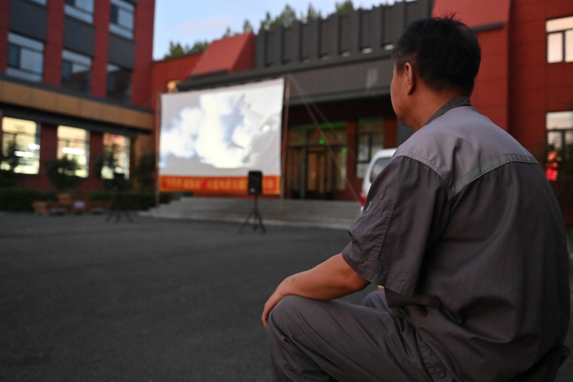 8月10日晚,舒兰市第三中学安置点内放映露天电影《长空之王》,来自灾区的群众观看感人又励志的公益电影,度过了一个轻松愉快的夜晚。