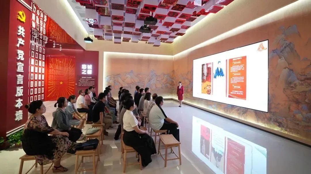 打造沉浸式教学馆,让党性教育从“新”向“心”,总体面积1500平方米的教学馆由相互关联、又相对独立的序(尾)厅、忠诚之源、忠诚之道、忠诚之魂、忠诚之要、忠诚之范、忠诚之行七个核心教学厅组成,集声光电等多媒体技术,融合了615张图片、72件实物、16组浮雕等,通过看、听、读、讲、演、答等教学体验,把学员“代进来”“沉下去”。
