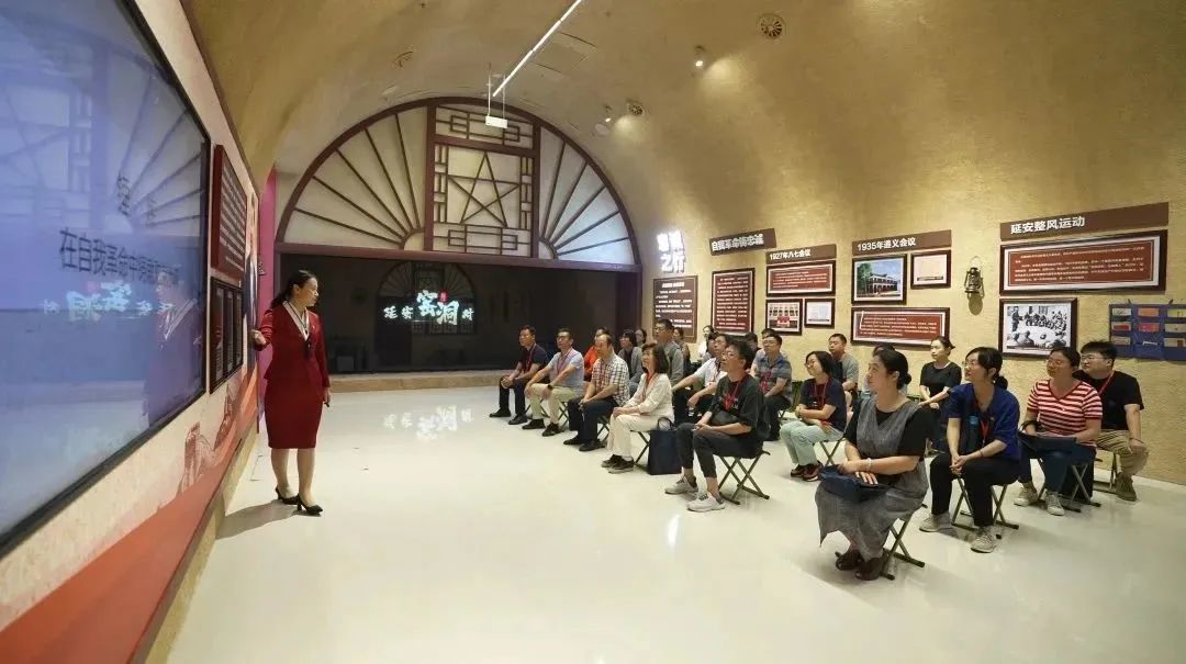 行至“永恒课题 自我革命”为主题的忠诚之行教学厅,学员们仿佛置身于当年的延安窑洞之中,全息影像技术再现毛泽东与黄炎培的窑洞对话,让学员们身临其境感受“窑洞记忆”。“我们以《锤炼》为题的教学课,从‘赓续创新:百年大党探索自我革命的宝贵经验;科学内涵:新时代党的建设打出的一套组合拳、制度规范;实践指南:解决百年大党独有难题的制胜宝典’ 这三个维度,让学员更加明确勇于自我革命是中国共产党的鲜明政治品格,是筑牢对党忠诚的根本途径。”教师刘倩与学员们进行热烈的交流。