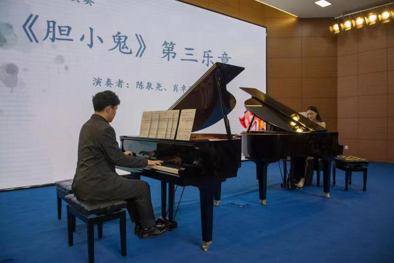 双钢琴《胆小鬼》《小河淌水》《勇敢的心托卡塔》《四季歌》,独奏《思恋》《阳关三叠》《肖邦第二谐谑曲》《流水》,八手联弹 《对花》,不同的演奏风格,演出效果却同样精彩。在这场音乐会中,除了独奏这种最常见的钢琴演奏形式,还使用了双钢琴、八手连弹这两种不常见的钢琴演奏形式。6位曾分获国内外各类钢琴赛事奖项的青年表演者,展示出了精湛的演奏技巧。现场,清澈又动听的声音撼动人心,令观众沉醉其间。