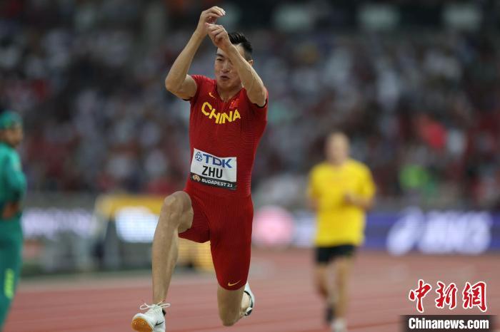 中国选手朱亚明晋级男子三级跳决赛。中新社记者 蒋启明 摄
