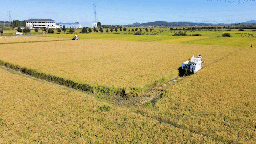 来到柳河县姜家店朝鲜族乡,丰田米业水稻种植基地稻浪滚滚,一片金黄。3台收割机正在联合作业,机械走过的区域,水稻被收进收割机里进行粒、秆分离,一台全喂入式收割机将水稻秸秆直接碾碎还田,另外两台半喂入式收割机,将水稻秸秆打捆甩到稻田里。