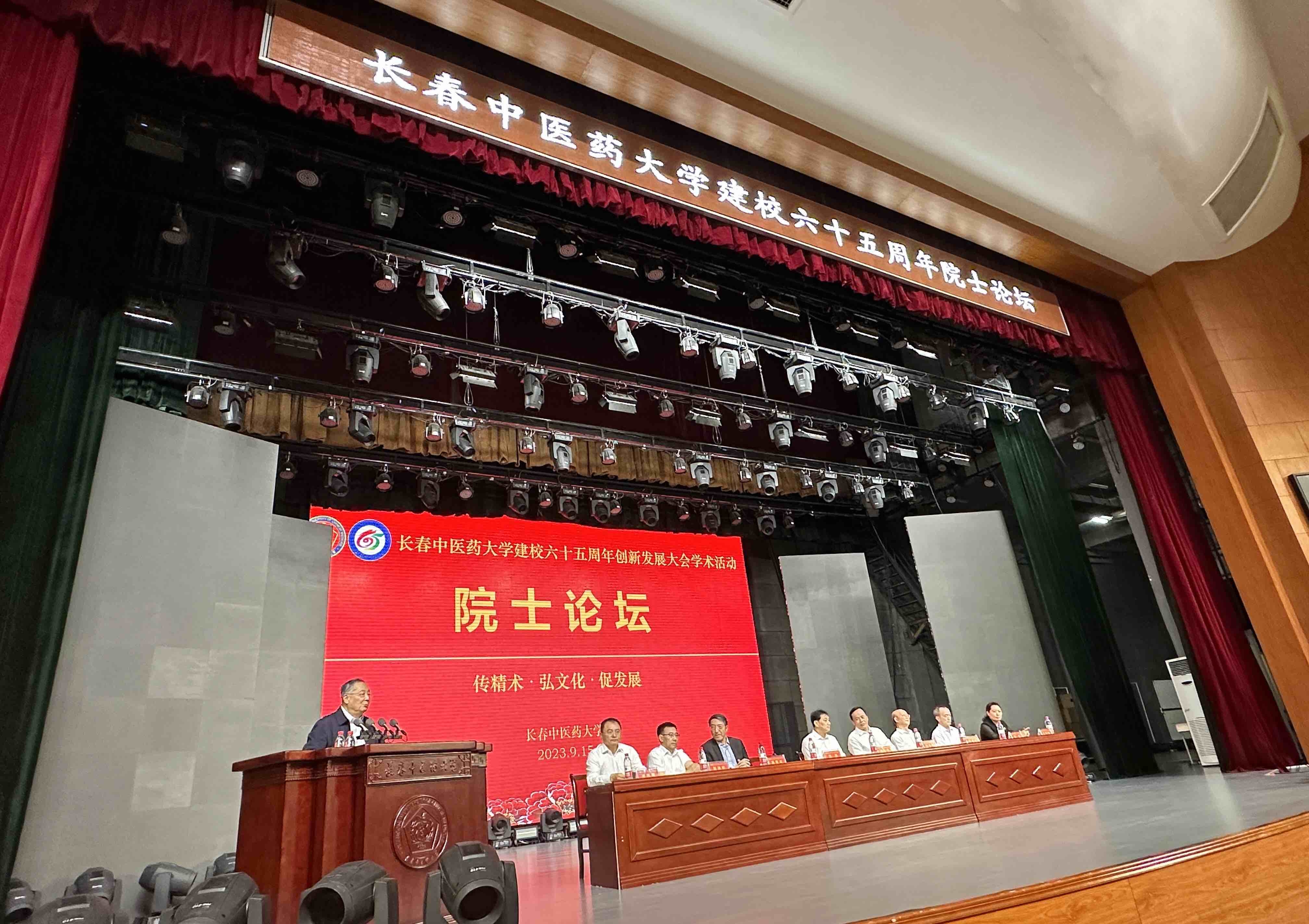 为加快推进中医药事业创新发展,9月15日下午,长春中医药大学建校六十五周年“院士论坛”活动在学校四象城剧场举行。中国科学院院士仝小林、沈岩,中国工程院院士周宏灏、陈香美等国内顶尖学者相聚一堂,为我省中医药事业发展建言献策。全体校领导、相关领域专家学者以及师生代表等800余人参加。