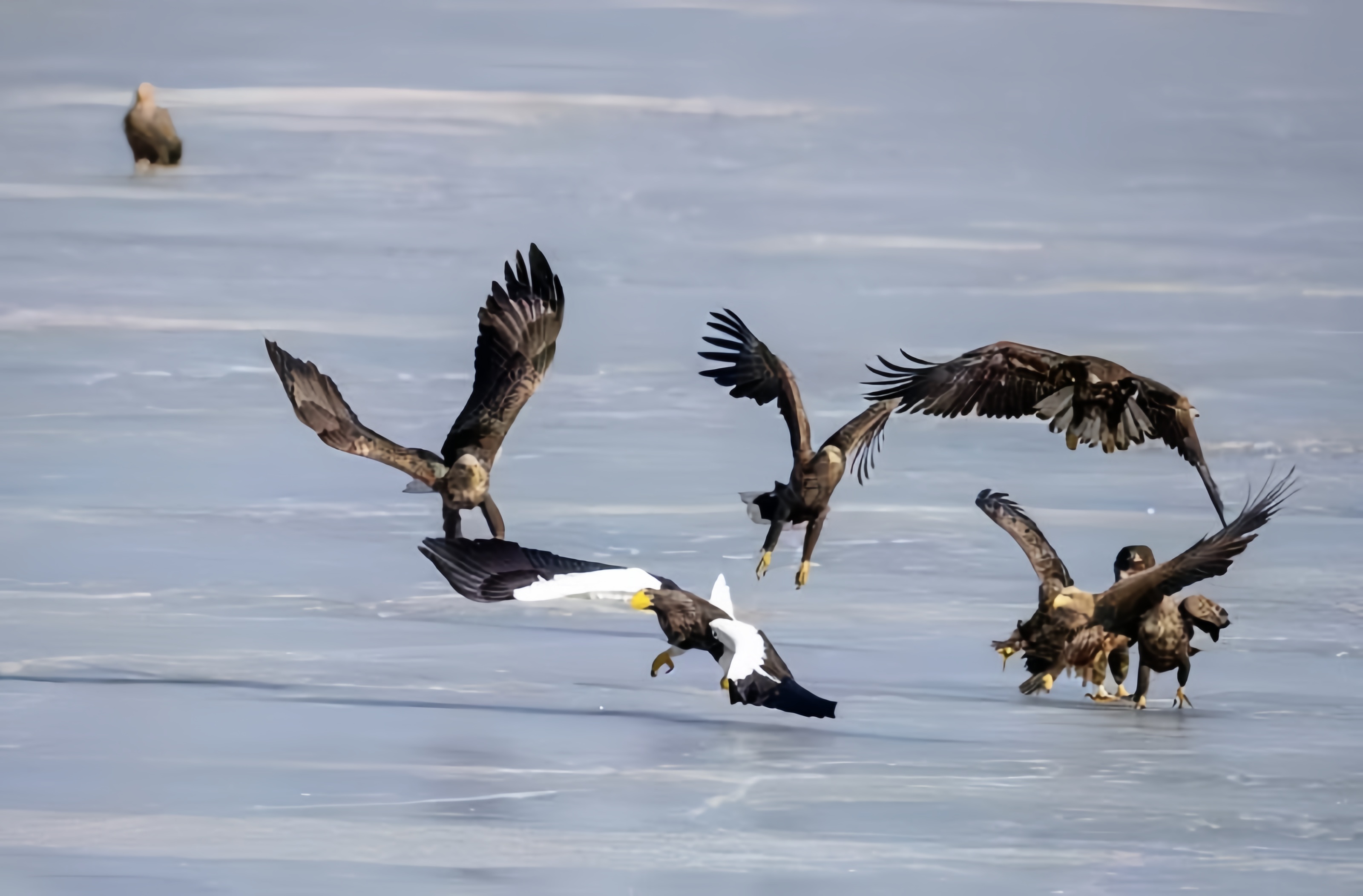 可能是因为春节过后气温回升的原因,今年海雕和秃鹫来得比往年略早。这几天开始,外地的摄影师们陆续来到湿地湖边,架起“长枪短炮”,不时按动快门,捕捉鸟儿舞动的精彩瞬间。