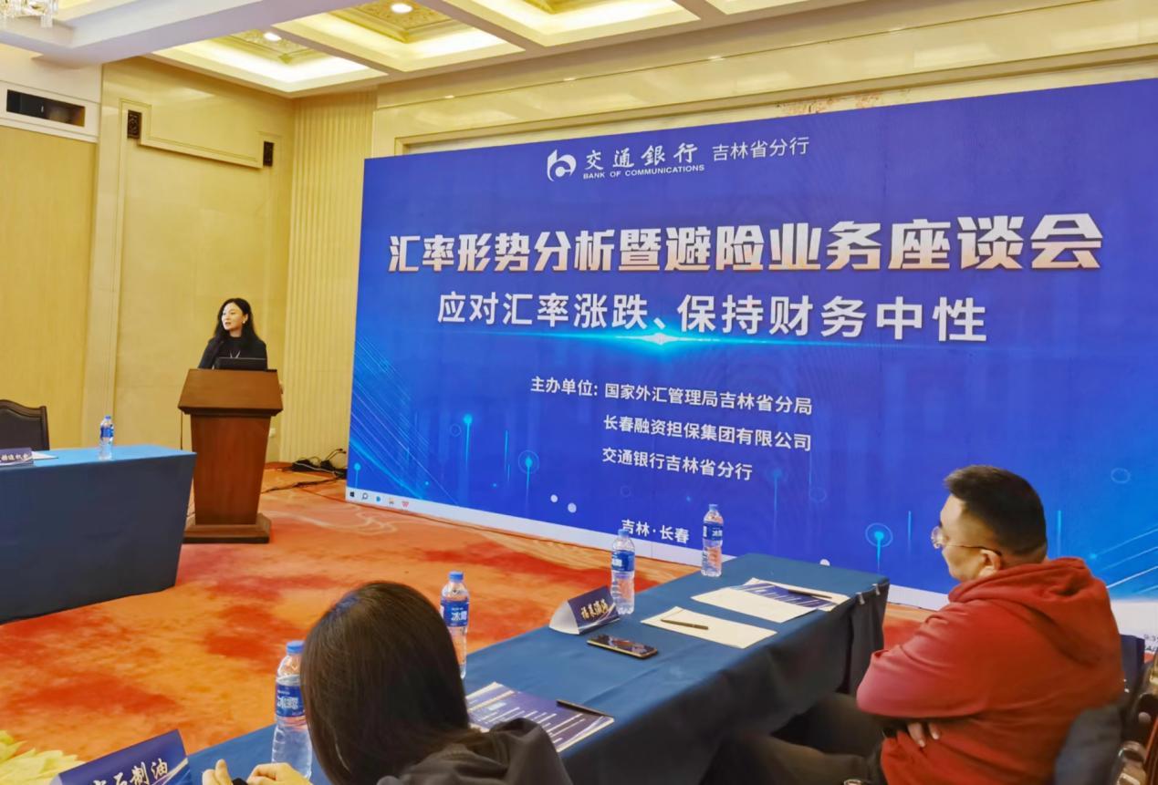 为深入贯彻中央金融工作会议和推动东北全面振兴座谈会精神,积极响应国家外汇管理局吉林省分局《全面提升跨境金融外汇特色服务质效三年行动方案(2024-2026年)》,交通银行吉林省分行联合省外汇局、长春融资担保集团于2024年3月12日上午召开了“汇率形势分析暨避险业务座谈会”。会议邀请了省内26家大中小型外贸企业参与,旨在向涉外企业宣传汇率风险中性理念的同时,协助企业积极应对汇率涨跌,提升企业汇率风险管理水平。国家外汇局吉林省分局国际收支处、长春融资担保集团、交通银行吉林省分行有关领导参加了本次会议。