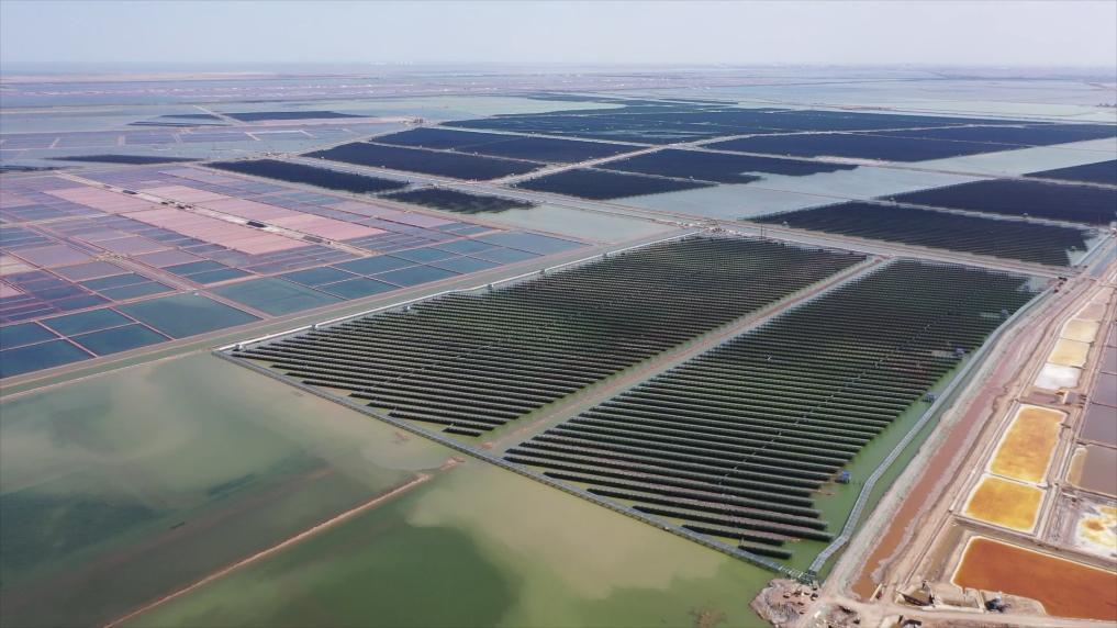 华电天津海晶100万千瓦“盐光互补”电站占地1300多公顷,是世界单体最大的“盐光互补”项目。目前,该项目已并网发电,每年可提供约15亿度清洁电力,可满足150万户家庭1年的用电量,等效减排二氧化碳约125万吨。