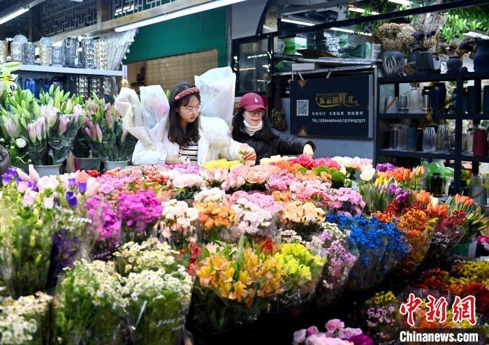 3月7日,在吉林长春一鲜花批发市场,市民在挑选鲜花。(资料图)张瑶 摄