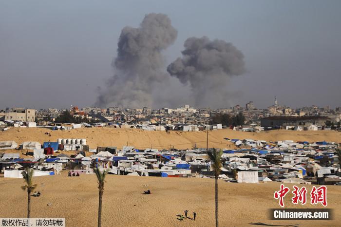 当地时间5月6日,以色列空袭加沙地带拉法以东,烟雾升起。