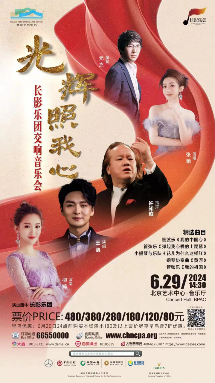 6月29日14时30分,长影乐团将走进北京艺术中心,携手著名钢琴家元杰与许知俊、王凯等艺术家们献上名为《光辉照我心》的主题交响音乐会。