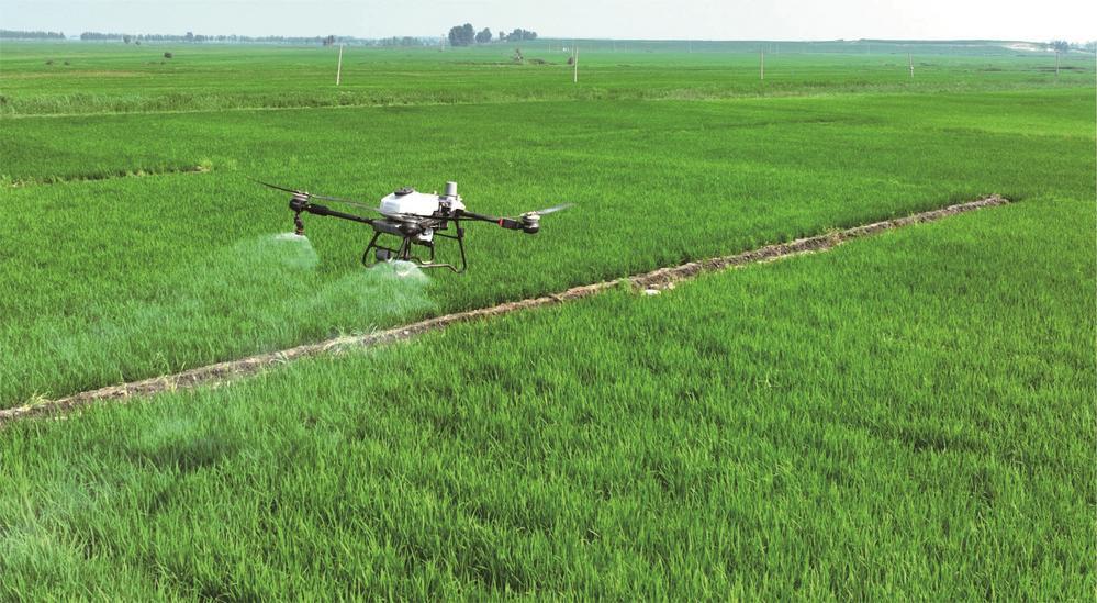 近年来,扶余市认真落实农机具购置补贴政策,提升农业机械化水平,促进粮食增产增收。图为更新乡一处水稻田内无人机正在喷洒农药。