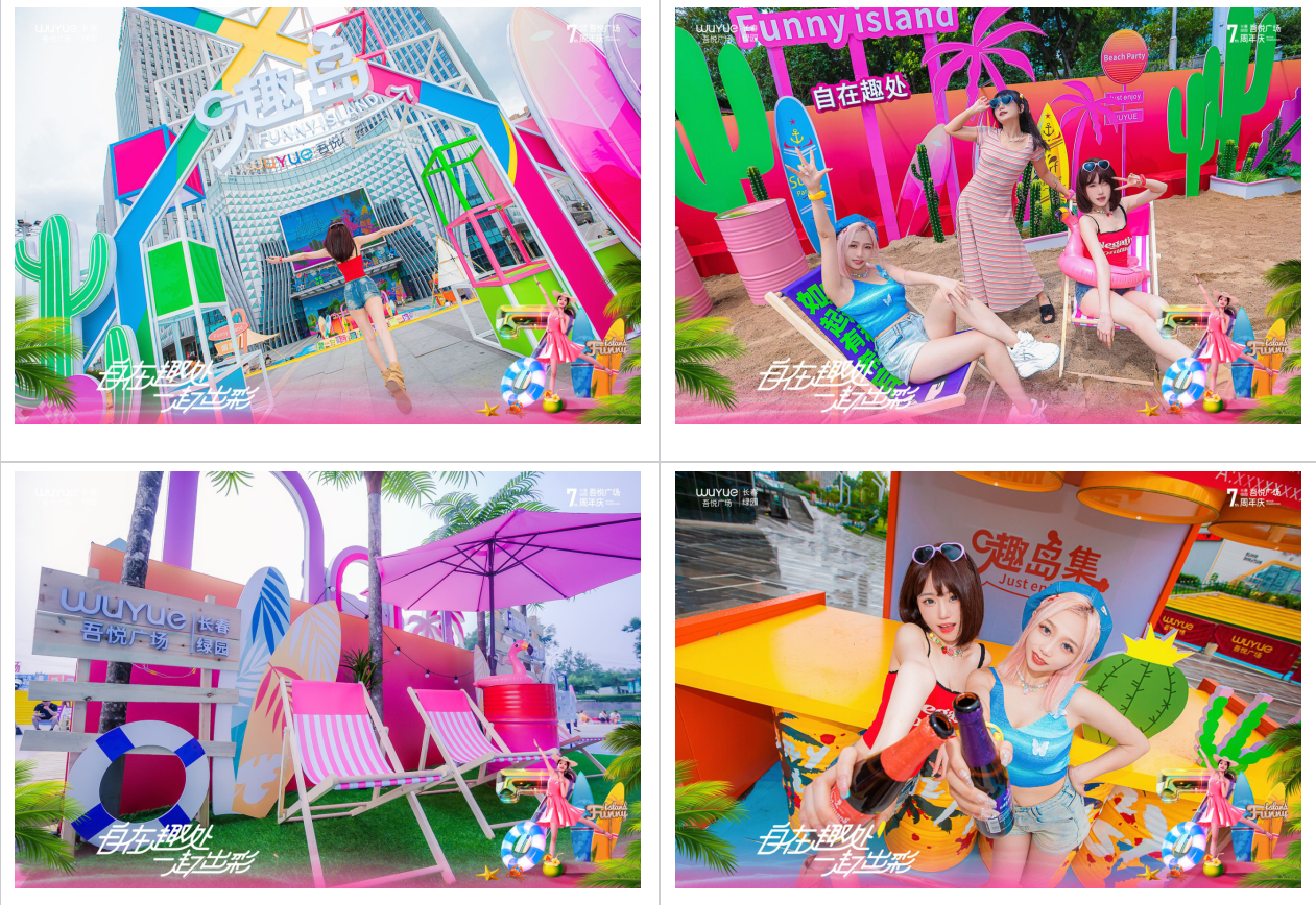 绿园吾悦在1号门下沉广场打造了长春首个超500㎡的城市海岛营地——“趣岛”,岛上集合了趣岛市集、沙滩娱乐区、躺椅休闲区等多处打卡点位,营造了一种超city的城市岛屿氛围。吸引长春本地KOC到场打卡,累计抖音#趣岛#话题曝光量约300w+。