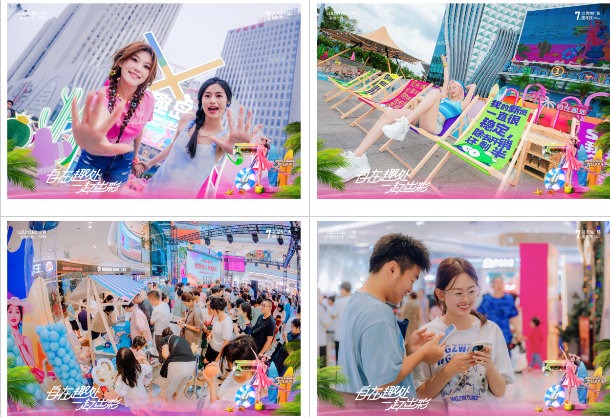 7月26日-8月4日,新城控股集团长春绿园吾悦广场迎来了7周年庆。这次店庆摒弃传统店庆模式,以全新的形象、升级的服务、新颖的玩法,围绕场景展示、现场互动、情感链接等形式触发消费者的情绪价值。在这个多巴胺活跃的彩色夏日里,为长春市民构建了一个自在的好"趣"处。