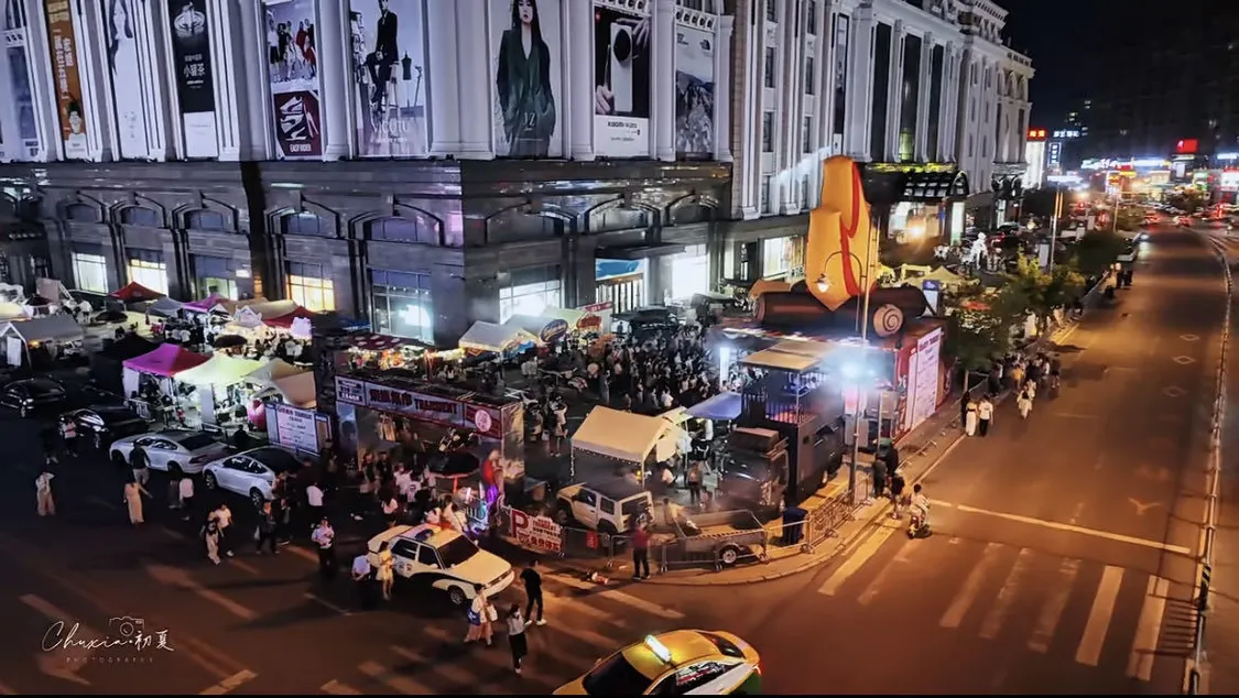 为繁荣夜间经济,商圈内搭建恐龙主题场景、安装霓虹指示牌,组织各商户在门前搭建个性装饰,烘托消费氛围,商圈内主要商户均实现延长夜间营业时间至午夜档。同时,为推动夜经济创新“出彩”,于七月末全力打造出为期4天的文艺潮流复古市集——“烧纵集市”,利用机车、音乐、街舞、涂鸦等复古元素打造集市场景,除传统意义上的烧烤、饮品、甜点、饰品等琳琅满目的街边售卖外,更增添了年轻人所推崇热爱的街拍、模特走秀、歌手弹唱、cosplay表演等娱乐活动项目供顾客免费参与及观看,单日人流量均达3万人次以上,集市总收入达366.45万元。在仲夏夜的松原街边,借力“盛夏消费季”活动的东风,闪烁出松原独有的“夜经济”璀璨星光。