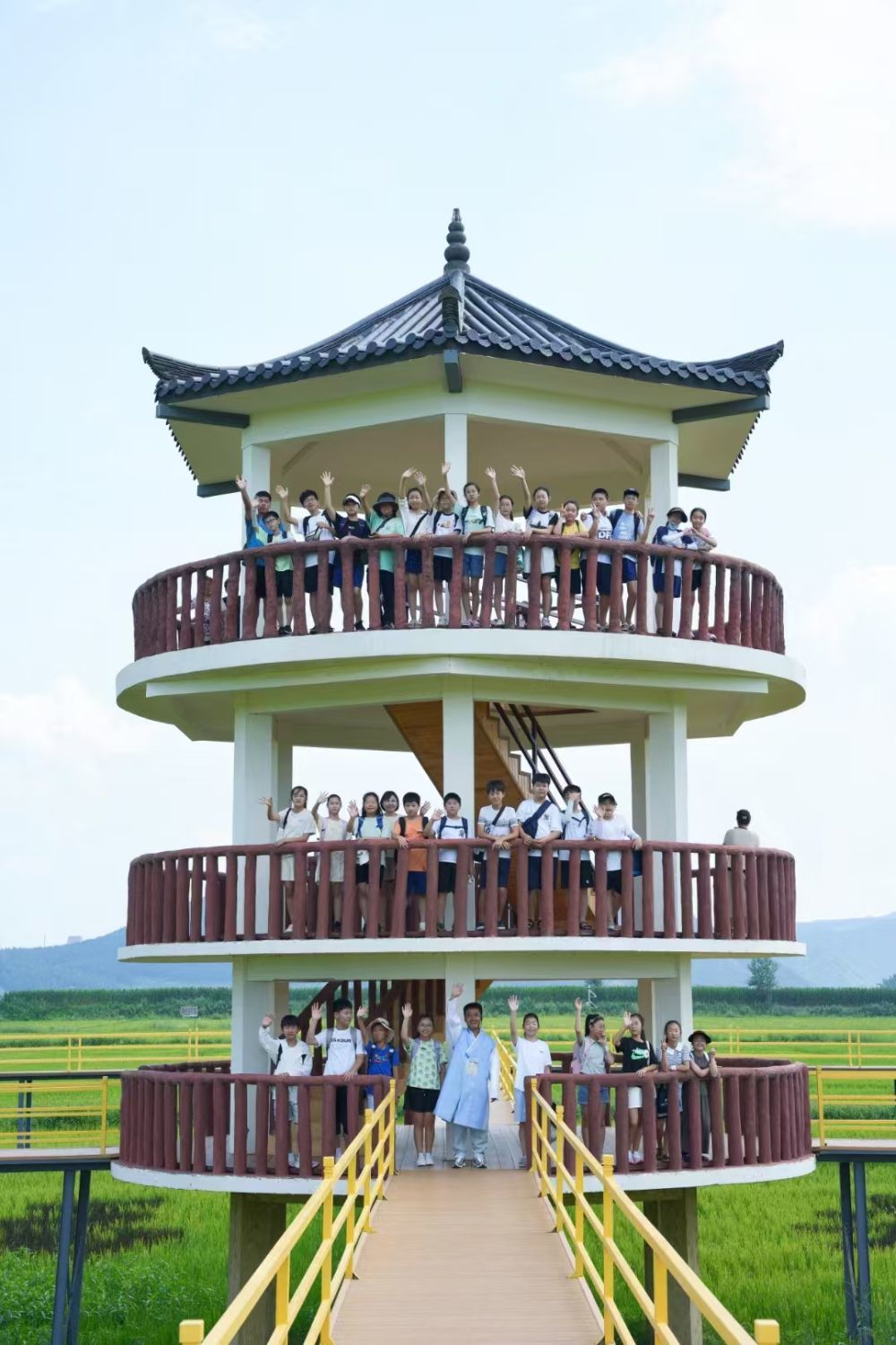 在延边朝鲜族自治州和龙市光东村,研学团队纷至沓来。稻田里,孩子们近距离观察水稻形态,聆听“一粒小小的种子如何长成沉甸甸稻穗”的故事。当地童野乐园还准备了稻田拖拉机、观景小火车、小小挖掘机等游乐项目,激发孩子们对农业科学的探索欲望。当地电力部门及时为变压器增容,保障游乐项目安全稳定运行。