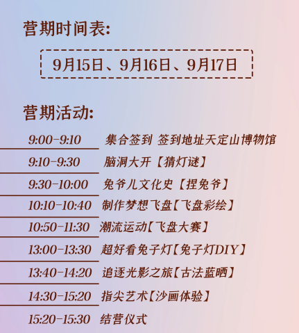 活动内容:制作诗词版花灯、巧绘团扇题诗词、诗词挑战对对碰、挑战桌游版诗词