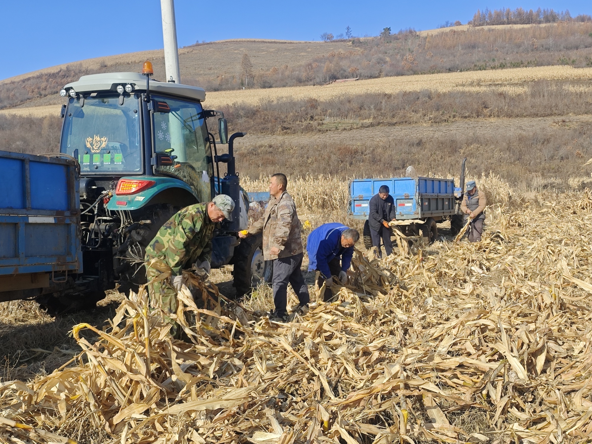眼下正是秋收时节,安图县3.1万公顷玉米全部成熟,种植户们趁着晴好天气,紧锣密鼓地采收玉米,田间地头随处可见热闹、忙碌的秋收景象。