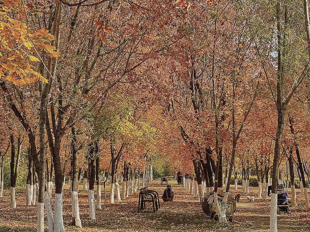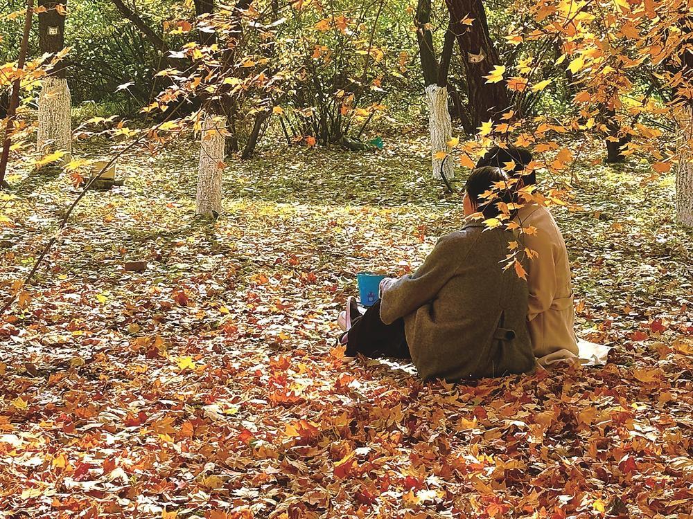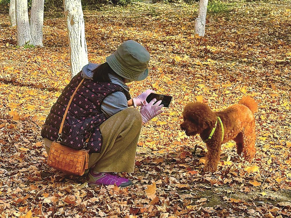 深秋时节,长春市彩织街上的口袋公园里荡漾出让人炫目的金色,满目的落叶铺成一地锦绣,附近居民纷纷来这里休闲拍照。