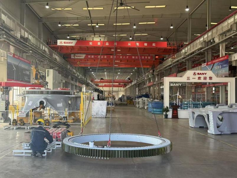 走进三一零碳产业园,一辆载重汽车正拉着近百米长的叶片缓缓驶出园区。
