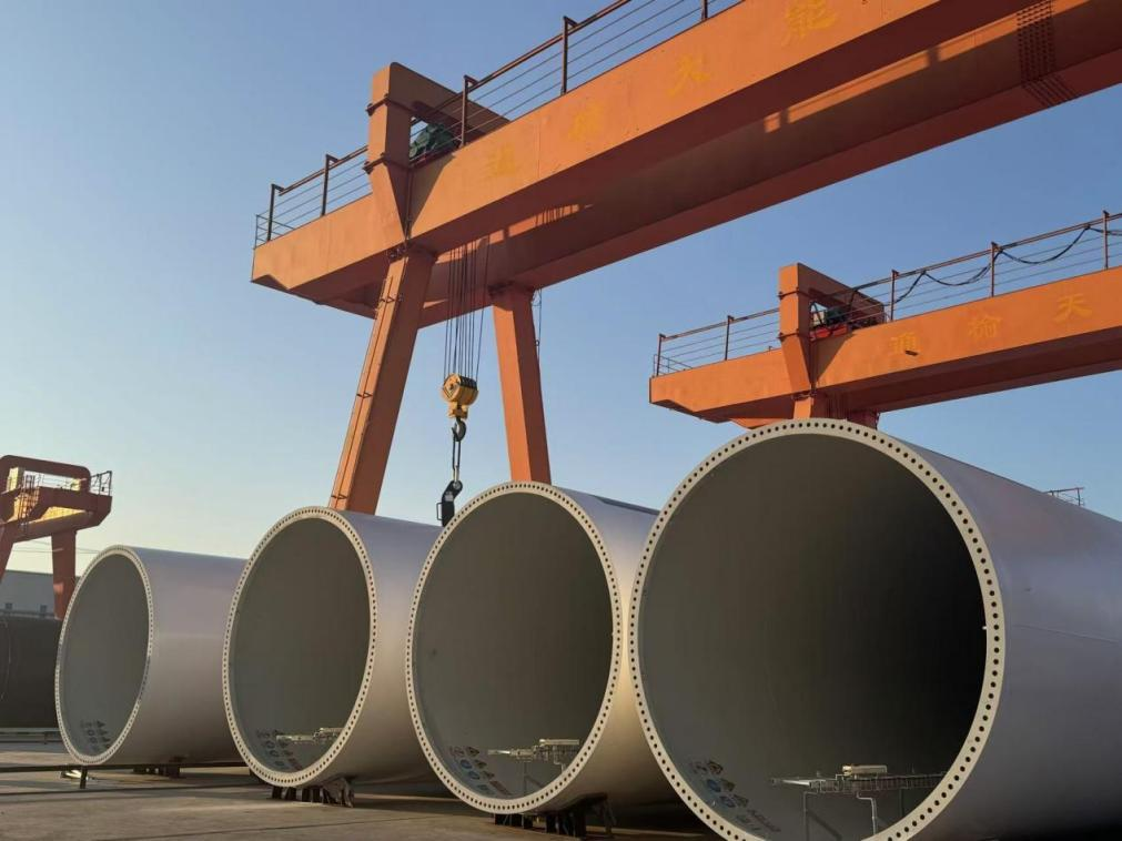 在吉林省通榆天能重工有限公司,工人们正忙着焊接塔筒。副总经理刘瑞林告诉记者,“在这条风电大路上,可以实现从底部到顶部,从无到有、从小到大,不出街就能让一台风机矗立起来。产业链不断延伸完善,营商环境不断优化,是我们公司落户这里的主要原因。”