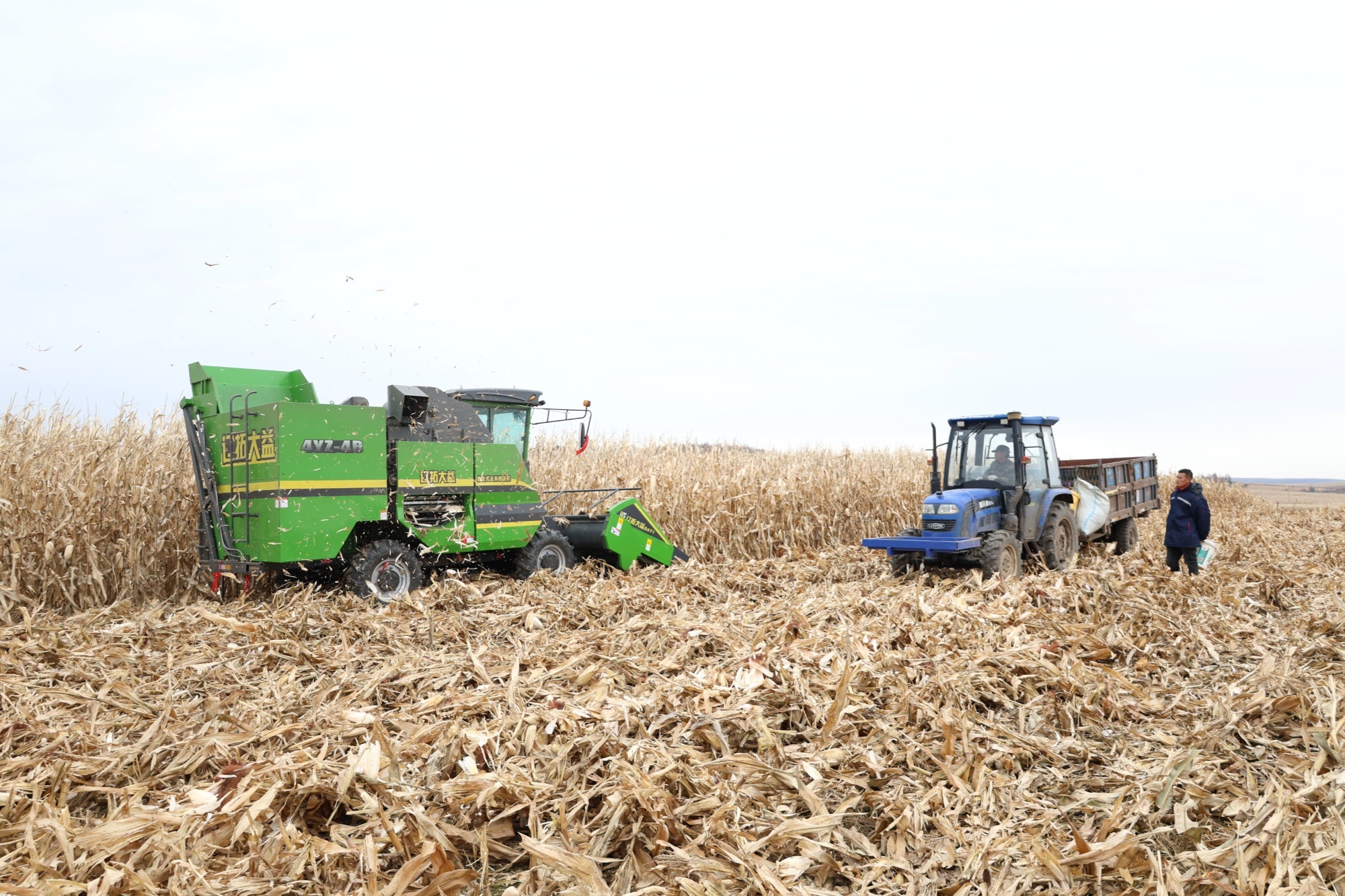 立冬已过,延吉市秋收正如火如荼进行。全市20万亩玉米地已完成过半收割,农用收割机的高效“上阵”让丰收图景更为壮观。11月8日上午,在朝阳川镇龙盛村的玉米田里,村民张良君正驾驶自走式玉米收获机在田间来回穿梭,田地里一派丰收繁忙的景象。