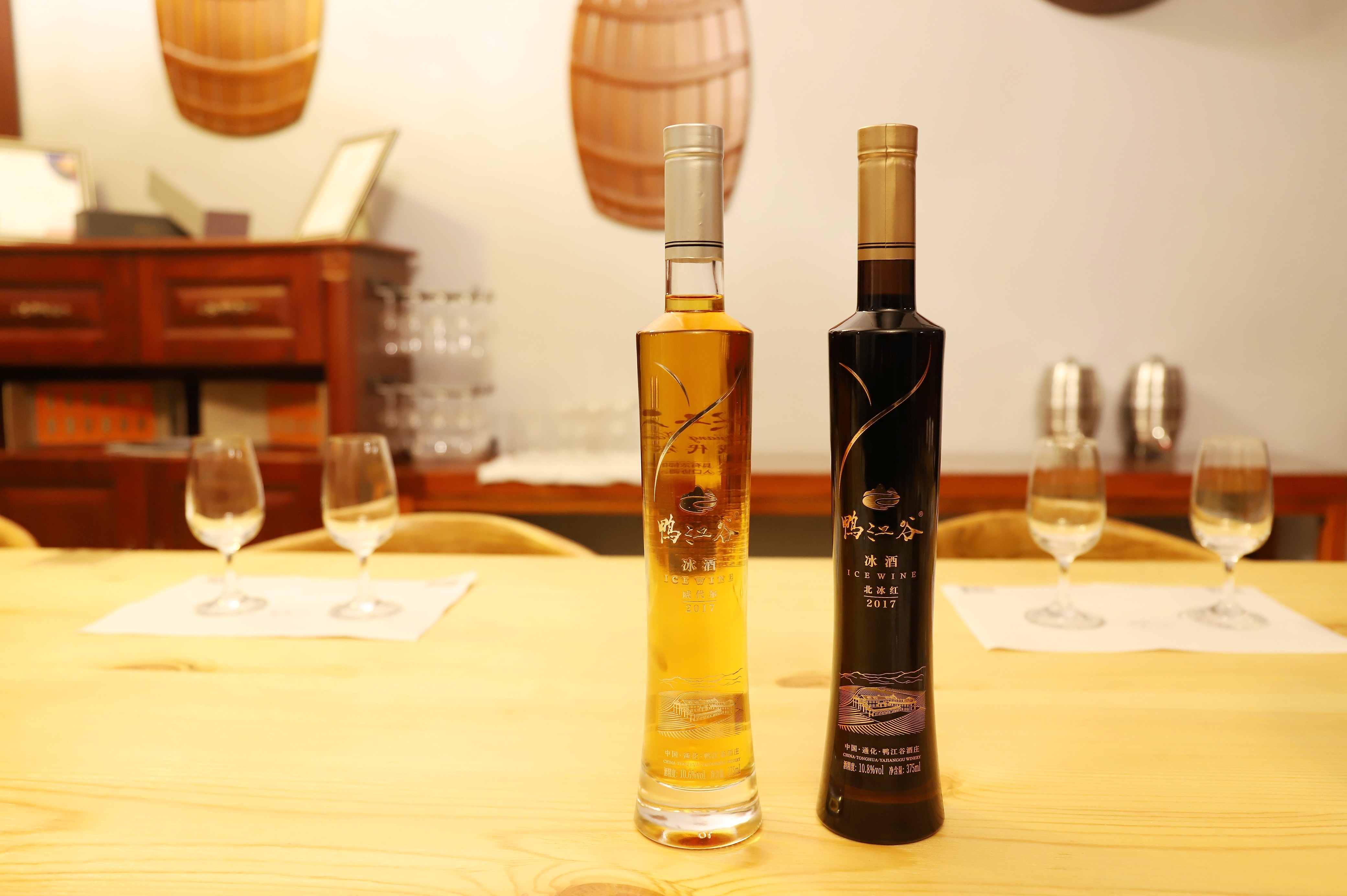 品鉴一杯,原汁发酵的冰葡萄酒带着源自葡萄本身的浓郁复合香气,威代尔冰白葡萄酒酒体金黄,具有典型的蜂蜜和热带水果香气;北冰红冰红葡萄酒酒体呈宝石红色,具有蜂蜜、干果类以及北方山楂、五味子等独特复合香气,果香、酒香瞬间征服每一个人。