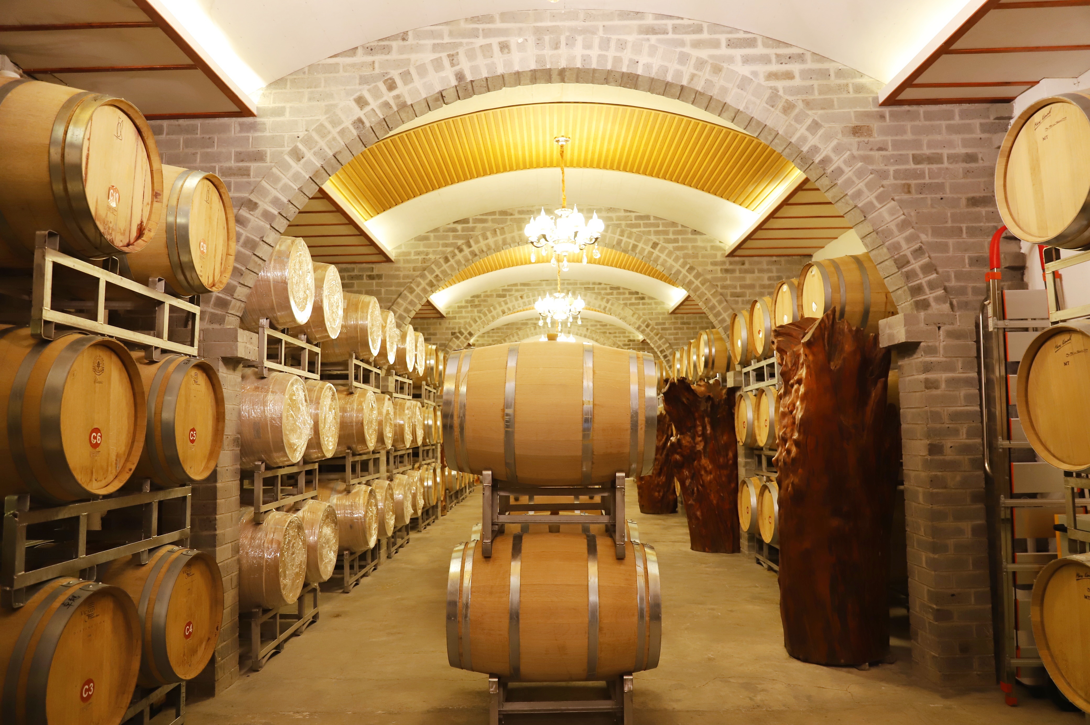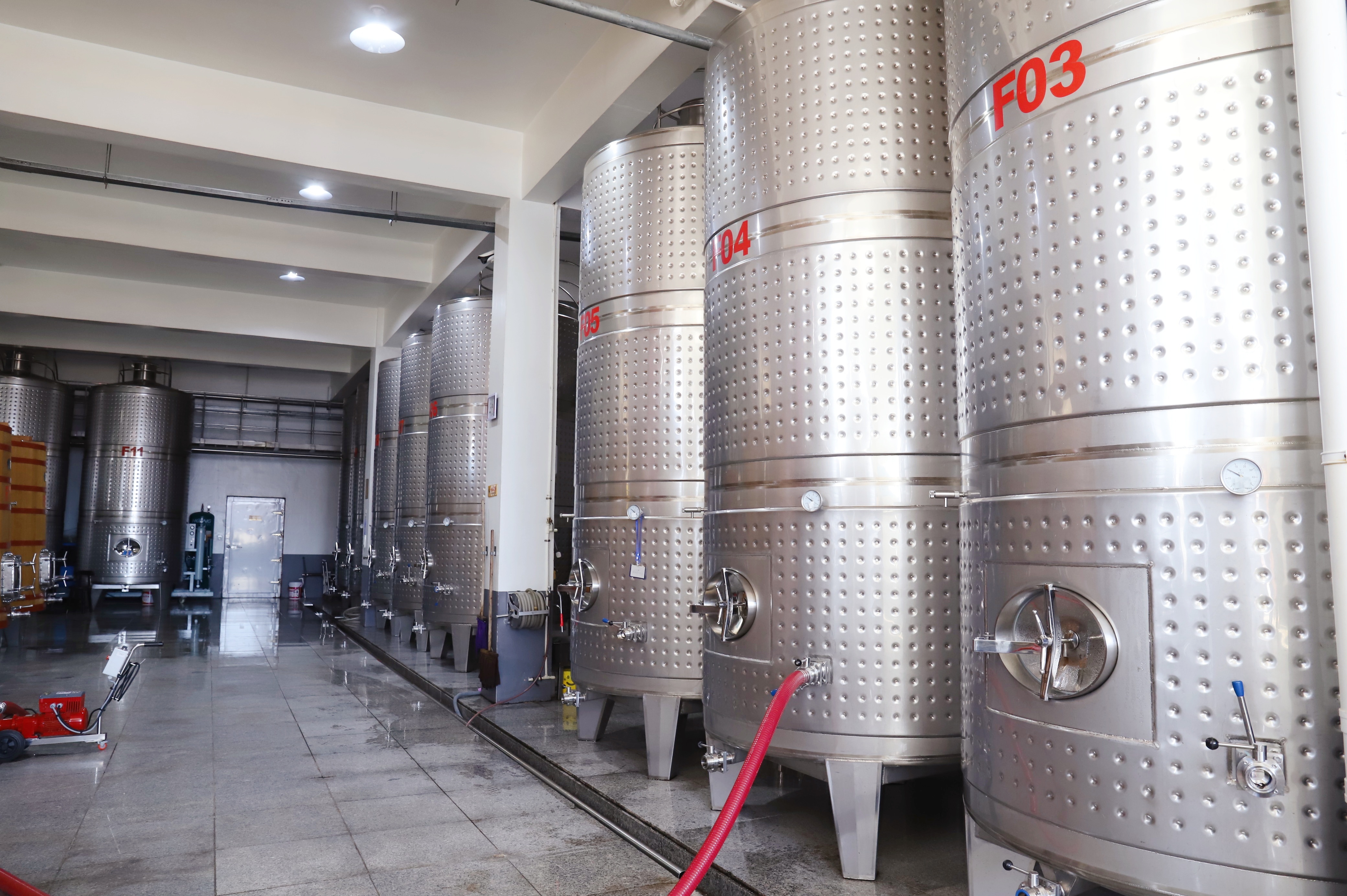 参观葡萄园后,记者走进鸭江谷酒庄生产车间,一座城堡模样的建筑敞开着大门,传出阵阵机器运转的声音。刚刚采摘下来的冰葡萄陆续运往这里,进行选粒、压榨。