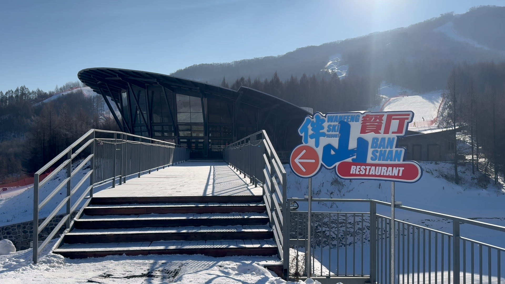 当缆车终于抵达伴山餐厅,眺望远方,心境豁然开朗。置身观景台,整个度假区美景尽收眼底,冰雪中的群山、林海,宛如秘境神秘雄伟,震撼、宁静与美好仿佛被定格成了永恒。