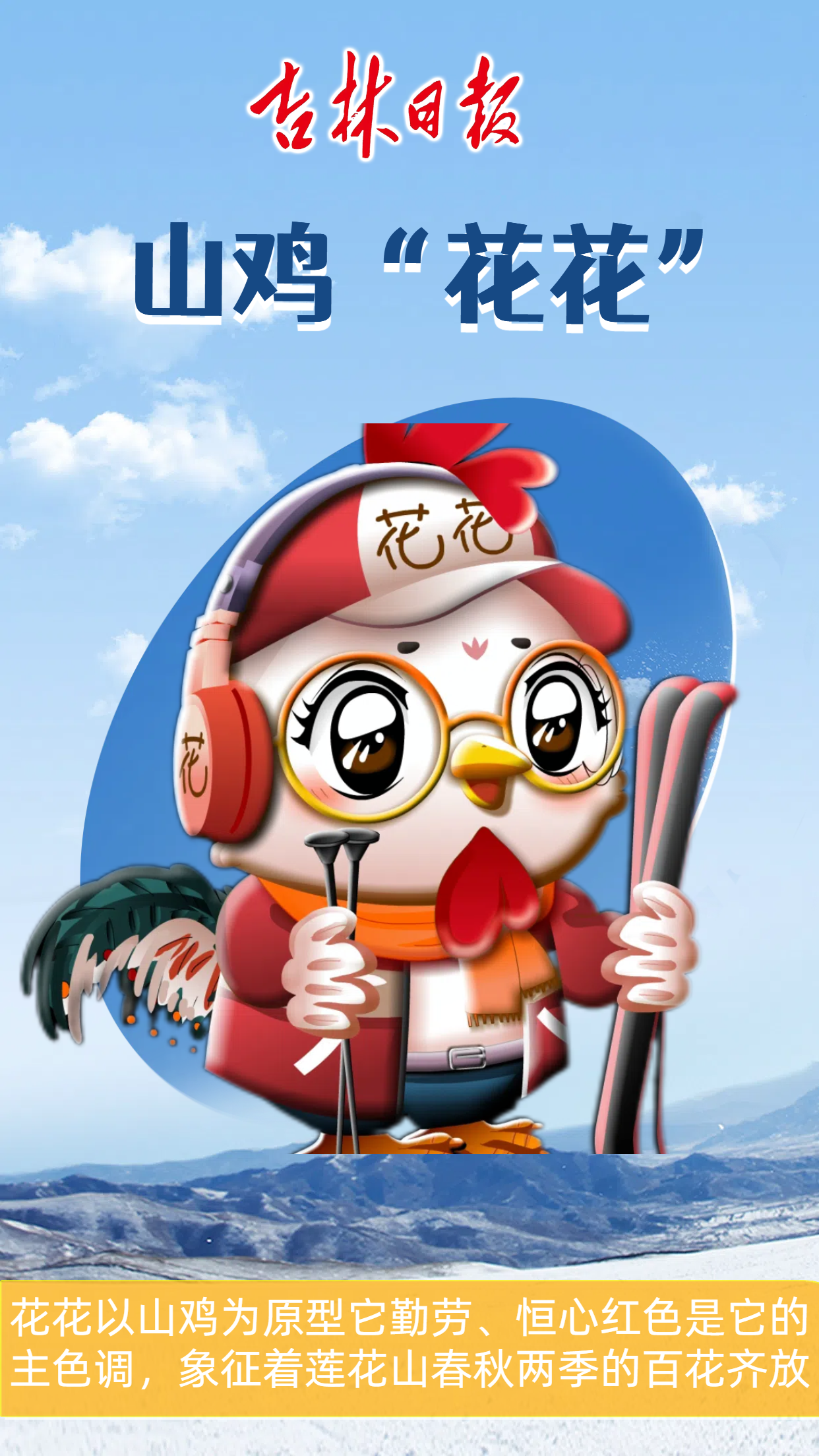 花花以山鸡为原型,它勤劳、恒心,红色是它的主色调,象征着莲花山春秋两季的百花齐放,寓意着我们的生活红红火火、蒸蒸日上,花花的形象与长春莲花山度假区勤奋务实、久久为功的奋斗状态完美契合。