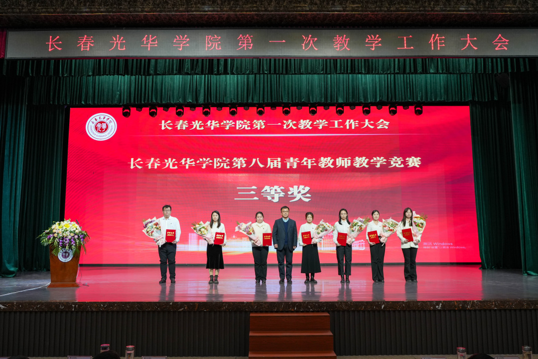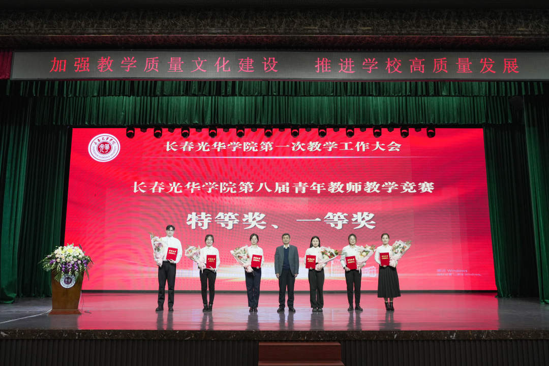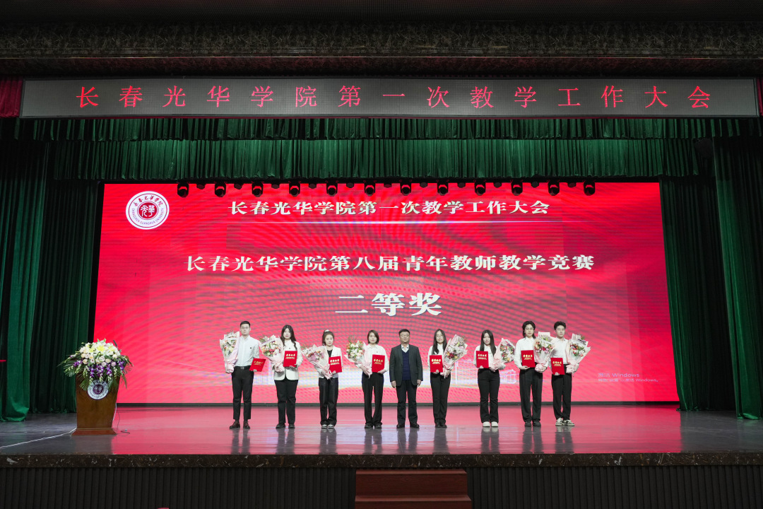 学校领导为长春光华学院第八届青年教师教学竞赛获奖教师颁奖并合影留念