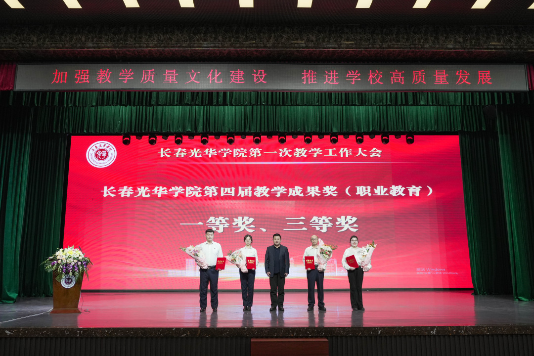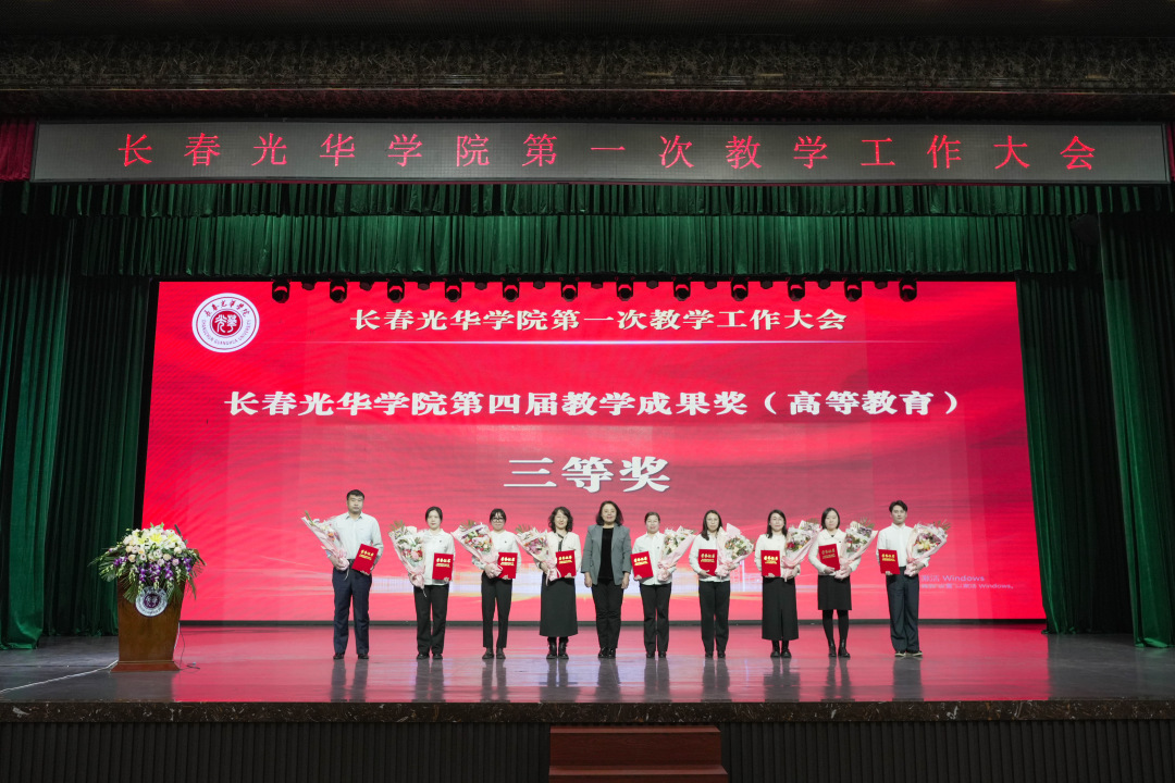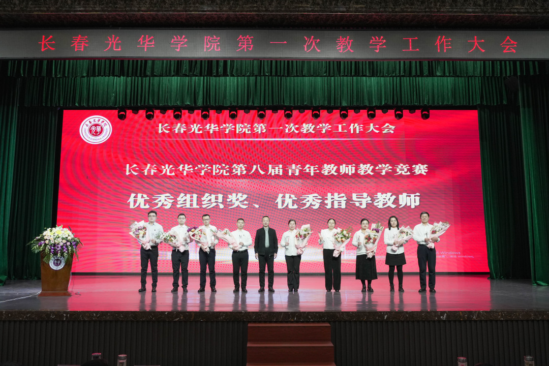 在大会上,学校领导为长春光华学院第四届教学成果奖获奖项目颁奖,为长春光华学院第八届青年教师教学竞赛获奖教师、优秀组织单位和优秀指导教师颁奖。