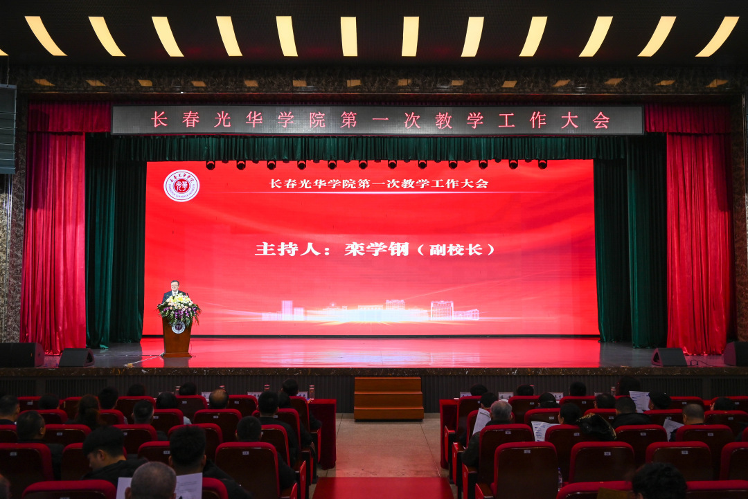 为加快培育教学高质量文化,推进学校高质量发展, 12月27日,长春光华学院在北区艺术剧场召开第一次教学工作大会。董事长康启鹏,校长李晓光,党委书记、督导专员闫峰,副校长栾学钢,副校长陈铁,副校长兼后勤服务公司总经理厉刚,党委副书记兼纪委书记兼副校长李春生,副校长张勇,党委副书记兼副校长高海英出席,各职能部门副处级以上干部、各教学单位院长(主任)、副书记、副院长(副主任)、系主任、全体教师、辅导员、校院教学督导等参加会议。大会由栾学钢副校长主持。