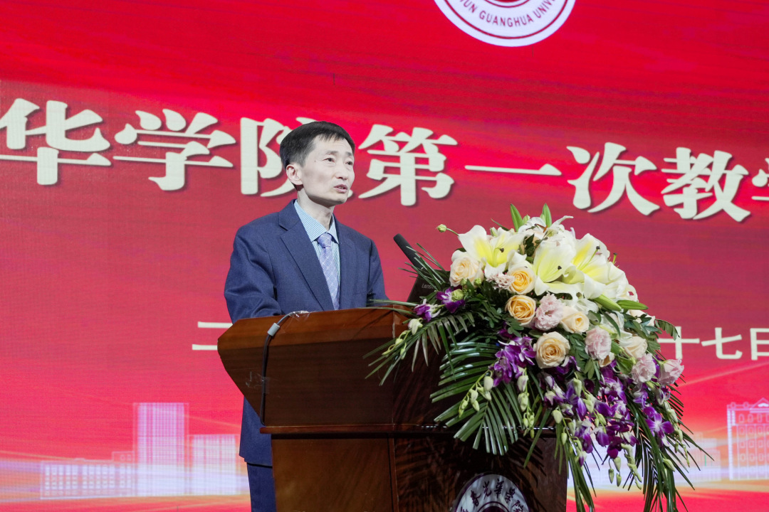 康启鹏董事长在讲话中首先回顾了自己在光华16年来的工作经历,他表示,学校的每一个员工虽然岗位不同,但都是教育工作者,都在潜移默化中影响着学生的成长成才。随后,董事长分享了自己30余年研习书法的宝贵心得,将书法之道与教育之道相类比,点明教育工作恰似书法创作,需要持之以恒的耐心与脚踏实地的务实精神。在当下社会对高校提出多元要求的大背景下,他希望学校全体教职工务必保持定力、实事求是,专注于自我能力的提升。他同时对青年教师寄予厚望,嘱咐青年教师以兴趣和热爱为导向,持续学习,不断提升在专业领域的影响力,深入践行开放、包容、国际化理念,以高质量教育教学培养高素质应用型人才。