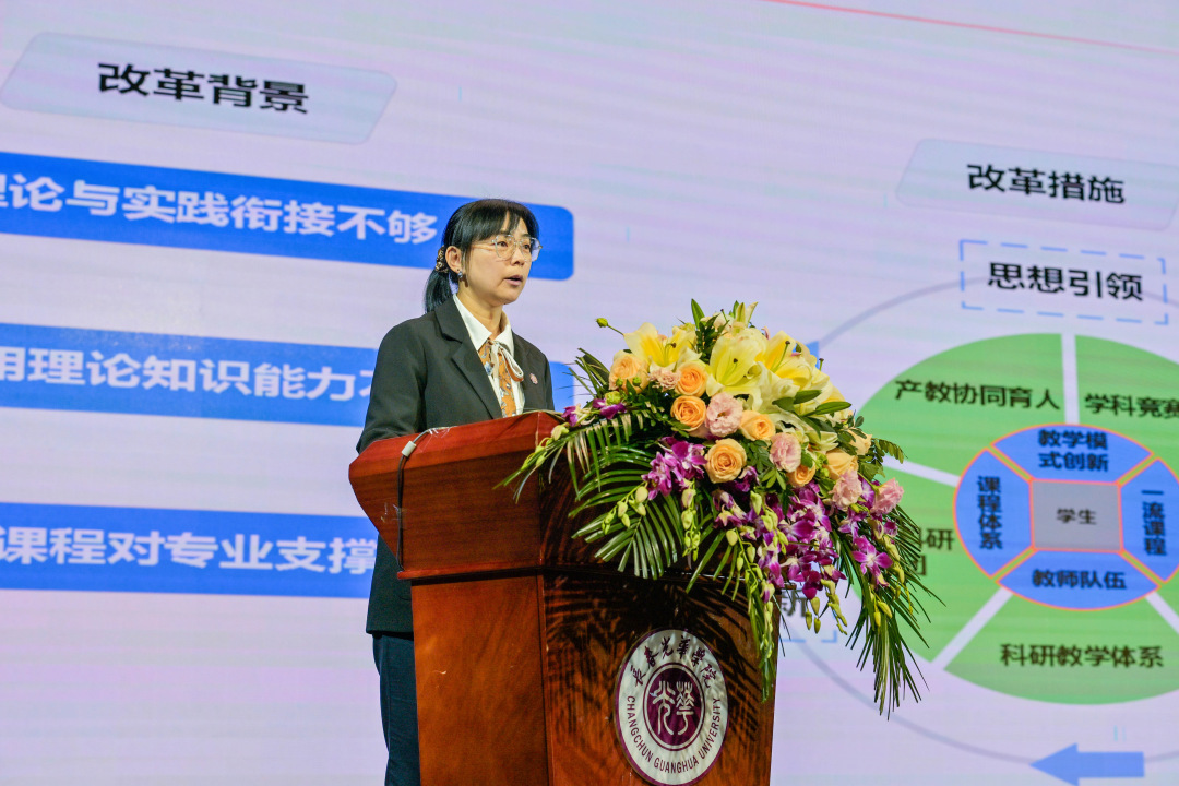 电气信息学院院长肖萍萍、艺术设计学院副院长周慧、电影学院副院长张通、基础教研部教师邢楠、外国语学院副院长孙玲琪分别作题为《“产教融合 共享共赢”现代产业学院创新与实践》《数智背景下艺术设计人才培养体系创新与实践》《“教研创”融合的全产业链戏剧影视人才培养创新实践》《“以赛促学、教赛融合”数学基础课改革与实践》《“学赛研创”一体化的外语专业课程思政创新实践》的教学改革经验分享。他们从产教融合、智慧教育、实践创新、教赛融合、课程思政等角度出发,为我们带来了前沿的教育理念、深刻的教育思考和宝贵的教学改革经验。