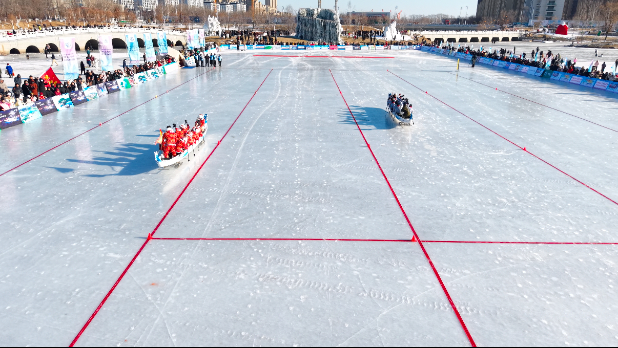 随着裁判员的一声令下,各支队伍如离弦之箭般冲出起点,在冰面上展开激烈竞争。观众喝彩声响彻全场,鼓声、呐喊声激昂悦耳,百钎齐动、冰花四溅,为广大群众和游客带来一场精彩的冰雪运动盛宴。