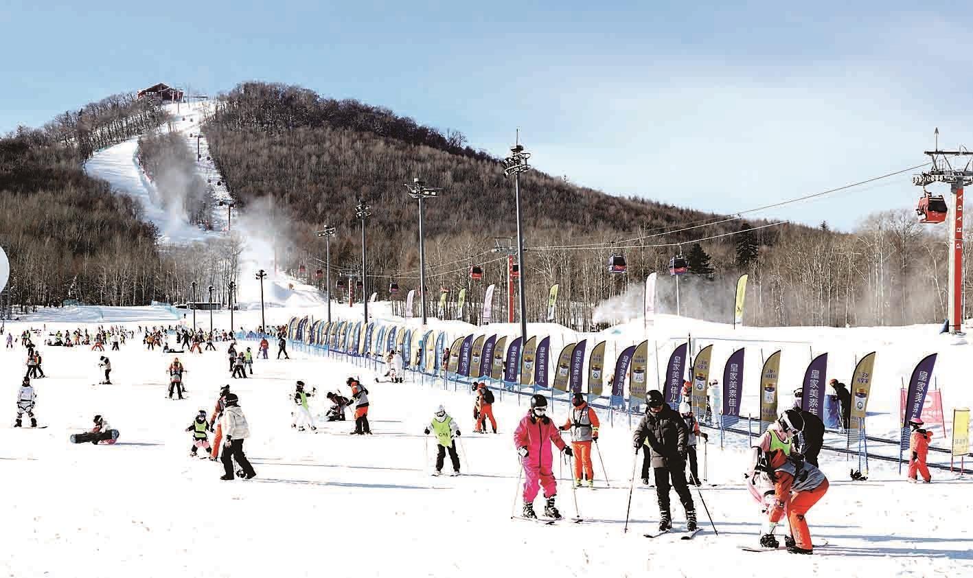 抚松县依托长白山万达国际度假区、长白山华美胜地度假区两大国家级旅游资源,重点打造了以“‘参’情冰雪”为主题的精品旅游线路,为游客提供“观长白”“戏粉雪”“吃人参”“泡汤泉”等多元化的旅游体验。图为游客在长白山万达国际度假区滑雪场体验滑雪的乐趣。