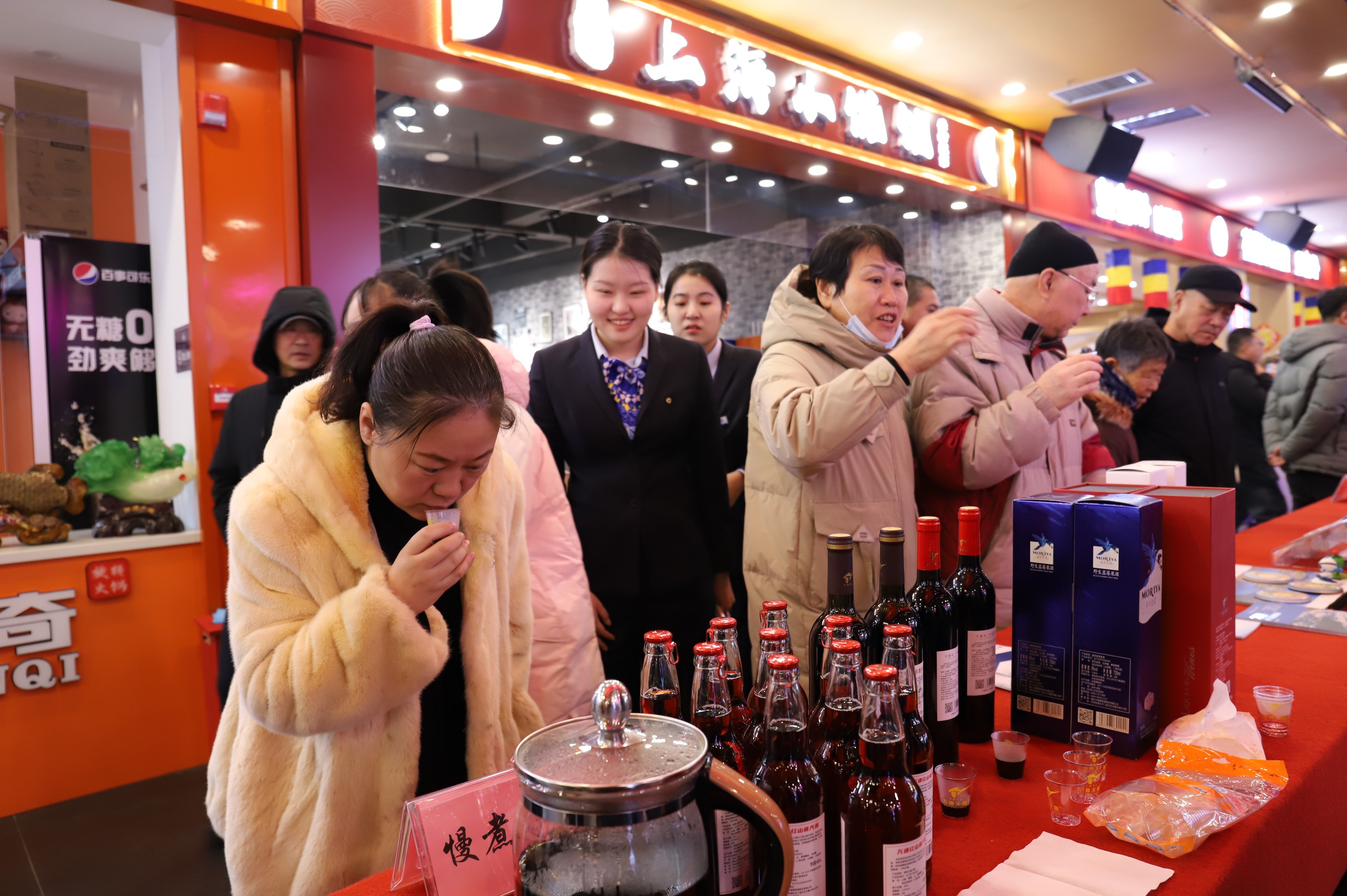 同时,活动现场设置人参鸡汤、煮红酒免费品尝展台,品味“舌尖”通化,浓浓的年味扑面而来。