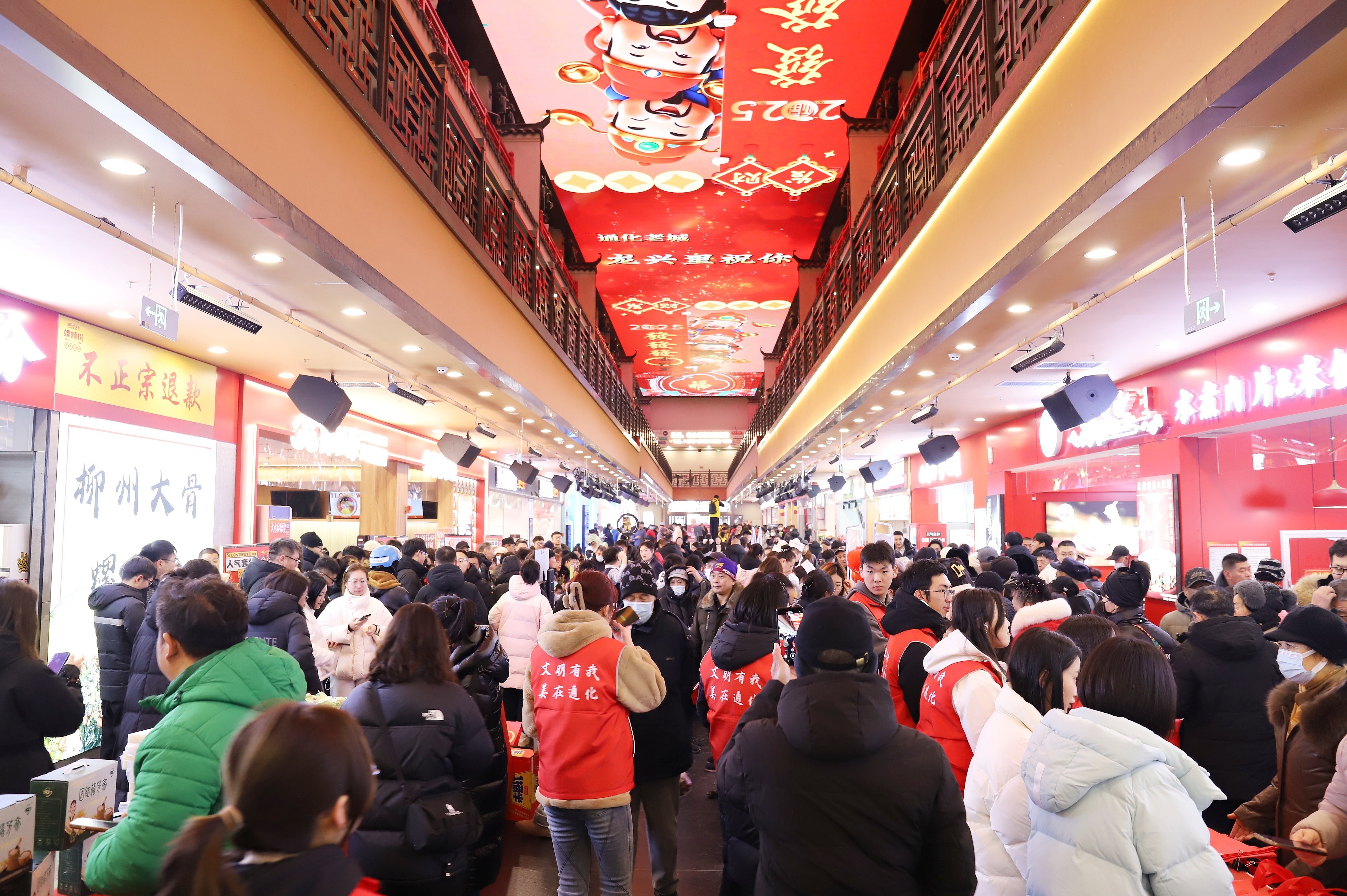 2025年吉林省“我们的节日·欢乐中国年”群众性主题文明实践活动通化市主场活动在通化老城·龙兴里热闹启幕,文艺汇演、年货大集、文旅推介、文化市集、志愿服务等一系列有年味儿、有温度、有特色的“新”意活动,营造新春浓厚氛围,推动传统节日振兴,培育时代文明新风。