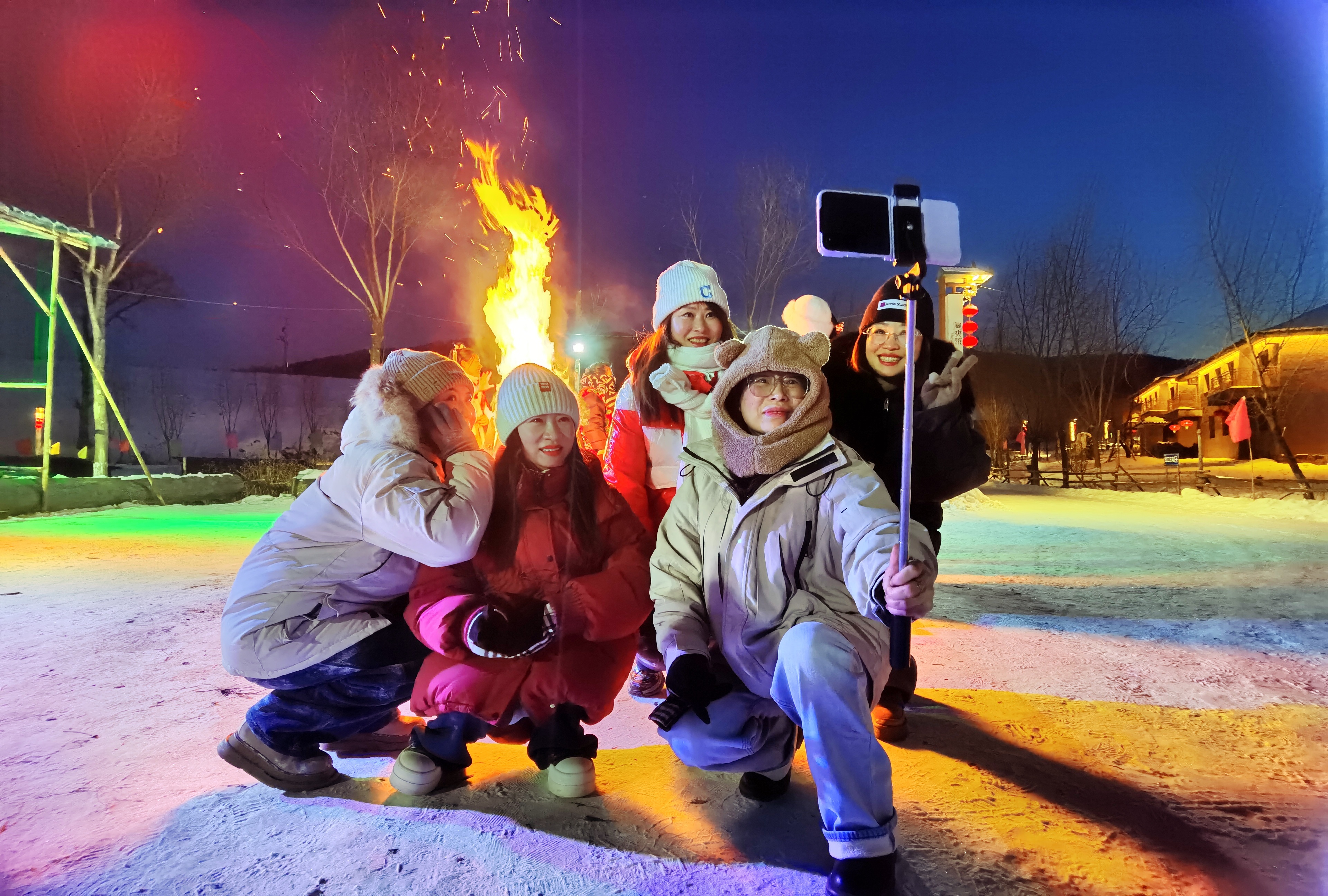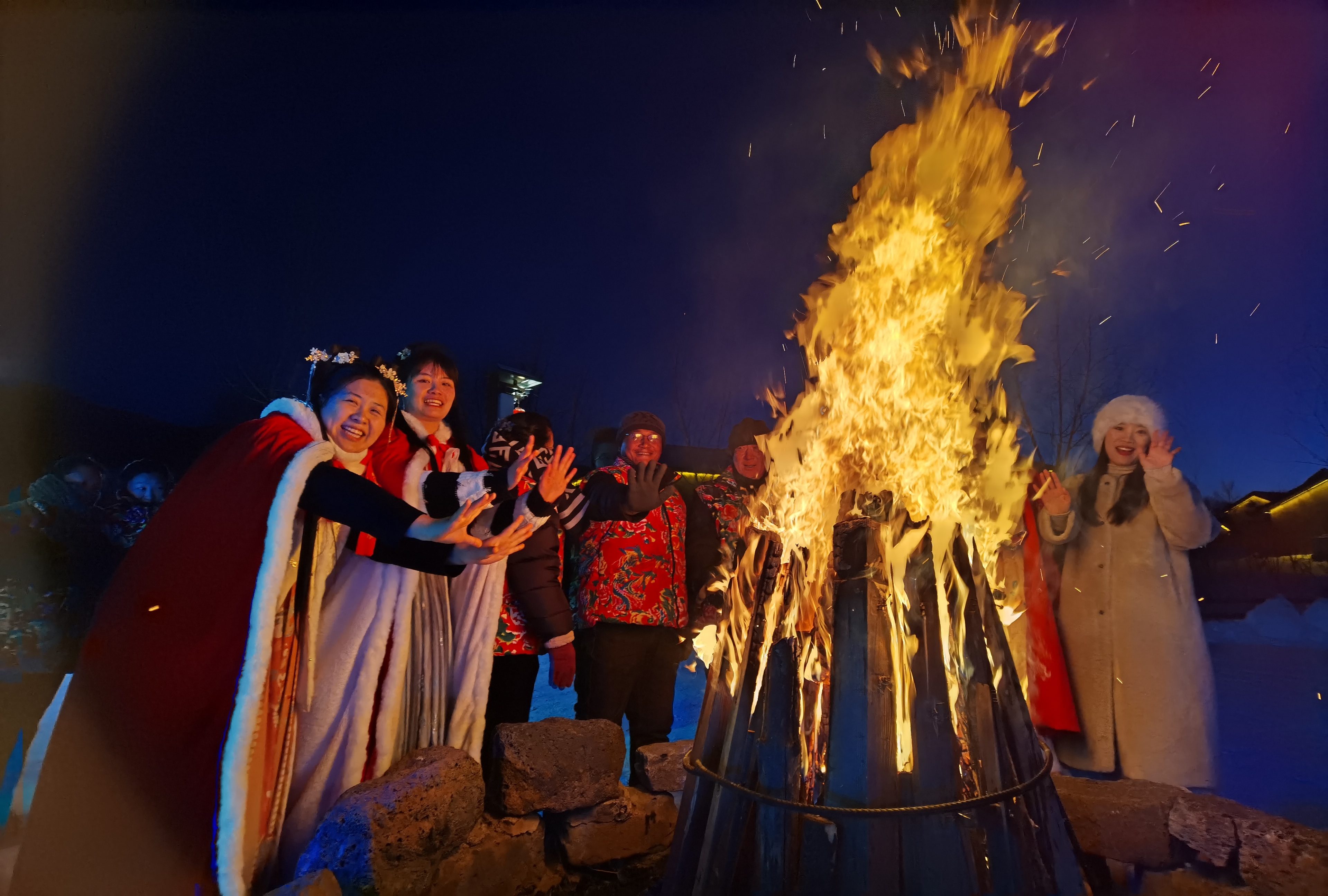 待到夜幕降临时,热情仍在延续。篝火燃起,温暖的火光映红了每个人的脸庞,大家围聚在一起载歌载舞,驱散寒冷,派对狂欢。