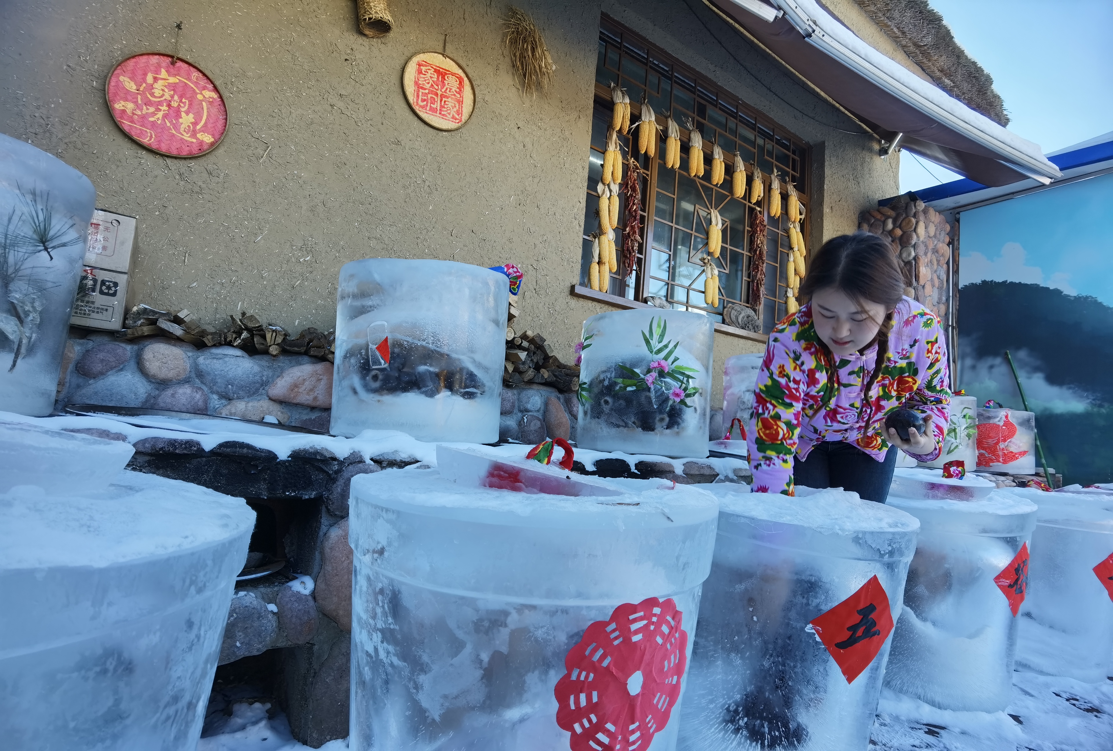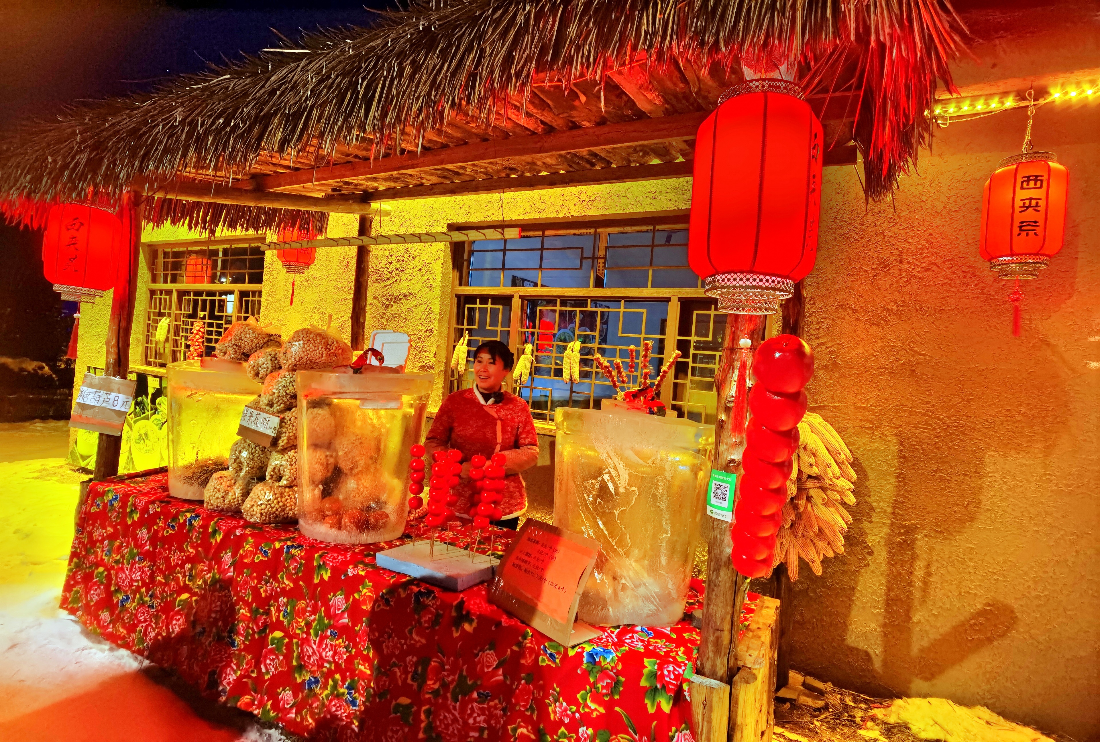 “咔嘣脆、现蘸的糖葫芦!一口爆汁的冻梨、冻柿子!用自家小豆包的粘豆包!咱们吃点啥?”