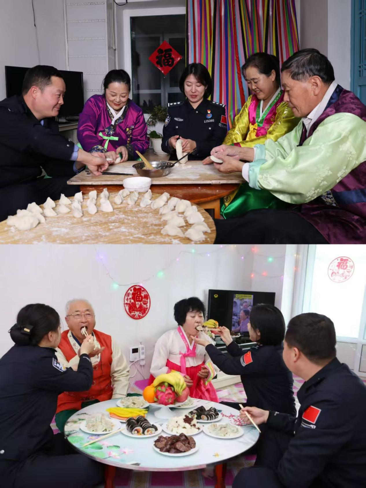 果园村是朝鲜族聚居村,全村大多数青壮年外出务工。73岁的张顺姬独自生活,平日里,家里的活儿都是派出所的民警帮忙干。村里老人们的大事小情,民警们都记挂在心上。尤其是每逢节日,民警们便来到老人家中,唠家常、问冷暖、送祝福,屋子里洋溢着节日的温馨欢乐。