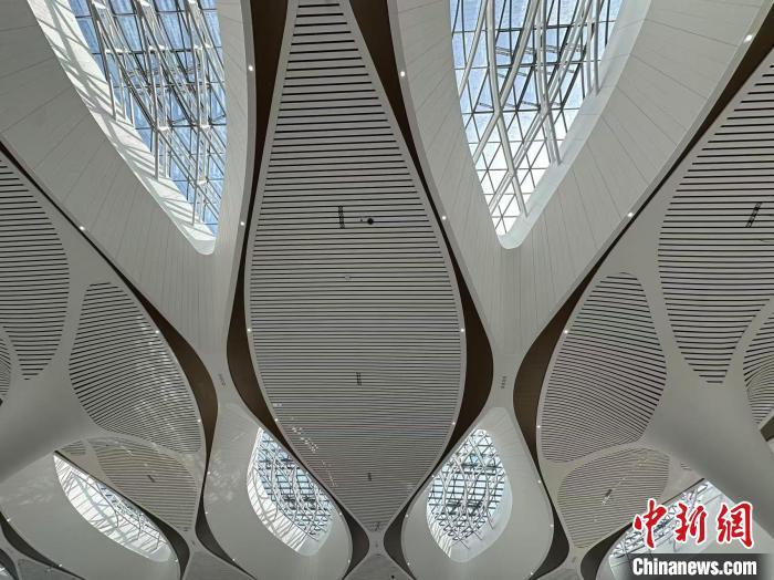 2024年8月21日,兰州中川国际机场T3航站楼中庭琵琶形状铝合金结构采光穹顶。(资料图) 戴文昌 摄