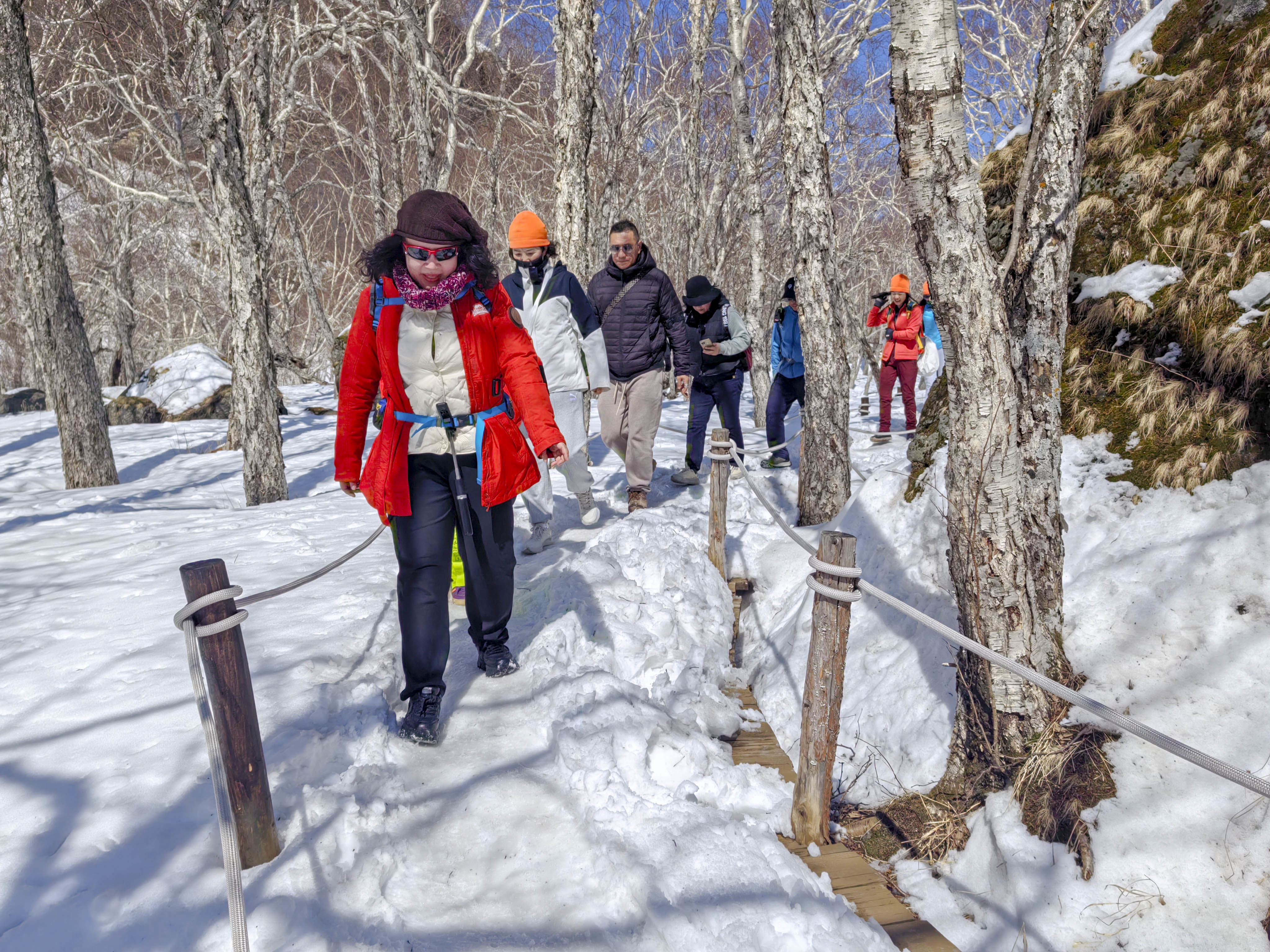 作为长白山旅游股份有限公司北景区主峰管理部的经理,丁刚记得这个雪季的每一天。“我们天池主峰工作人员,每天大概八点半就到达各自的工作岗位,清扫栈道积雪、除冰,检查护栏、护绳等安全措施,确保以最佳状态迎接游客安全畅游长白山景区。”丁刚介绍,在景区各重点位置均有员工站岗,随时提醒游客注意人身财产安全。员工定时换岗,温度寒冷时半小时一班岗,温度较高时一小时一班。换岗下来的工作人员没有时间去休息室休息,又要开始去清理积雪,只为给客人最好的旅游体验。